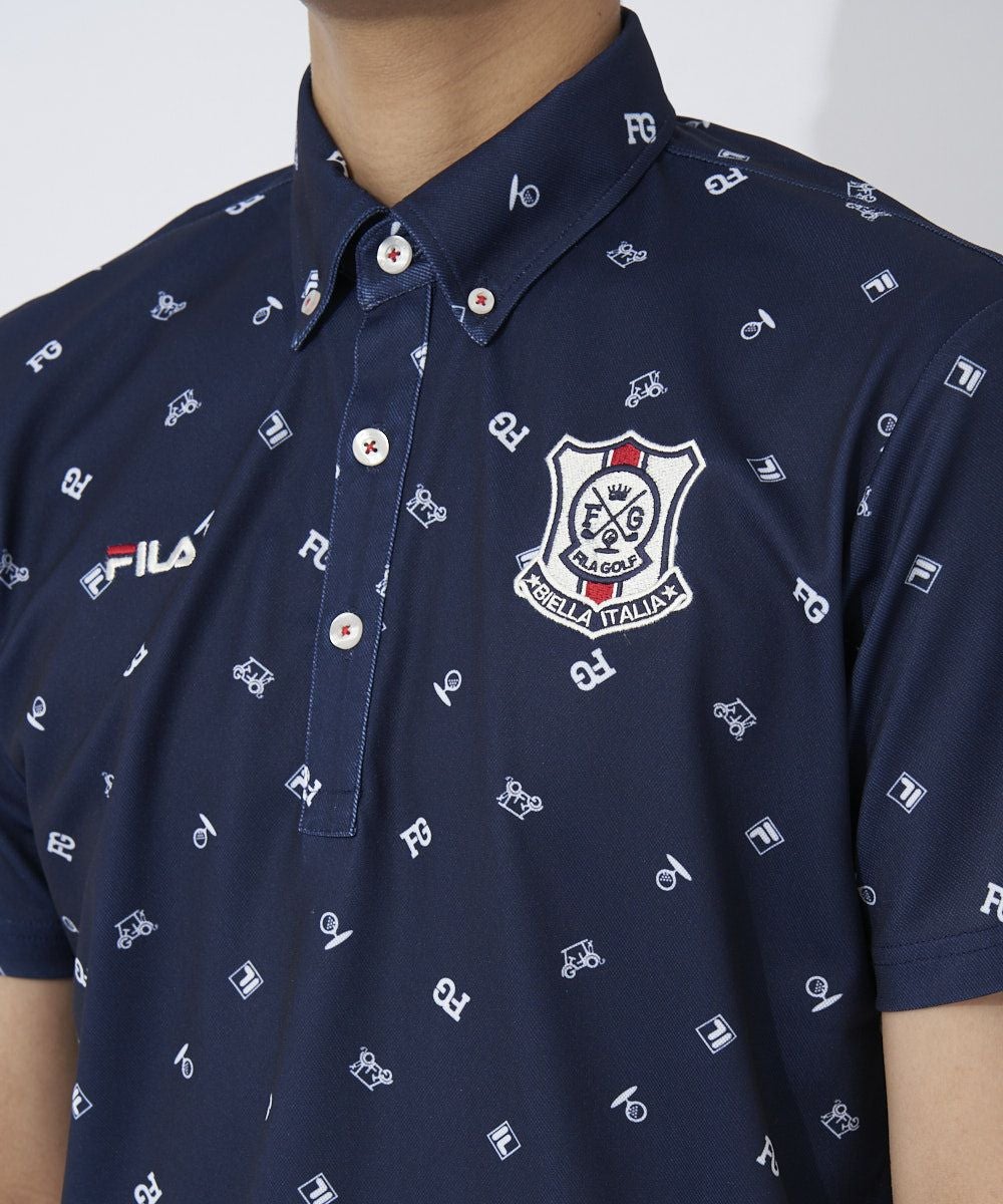 「FG」ロゴがあしらわれた総柄デザインの半袖シャツ。