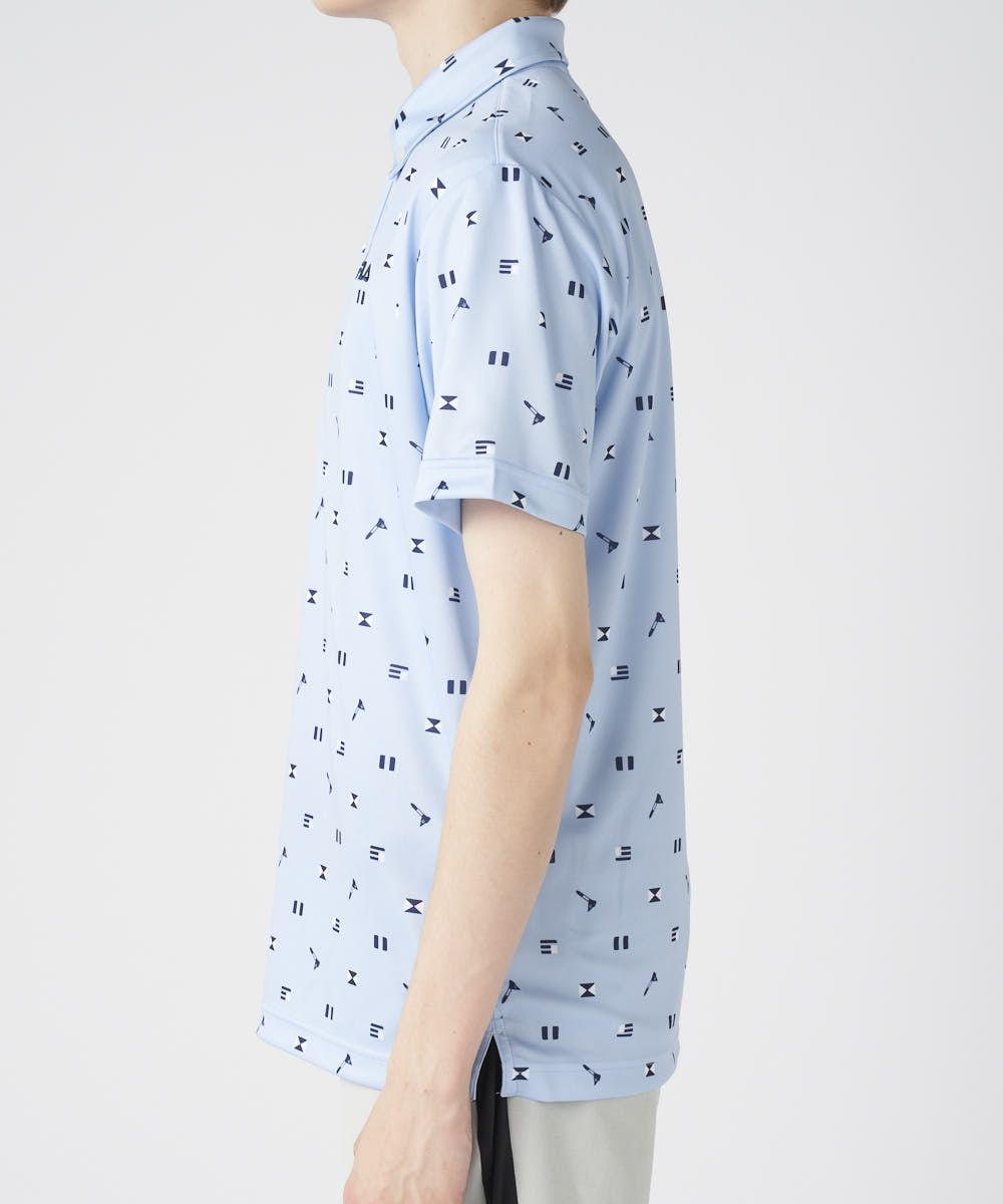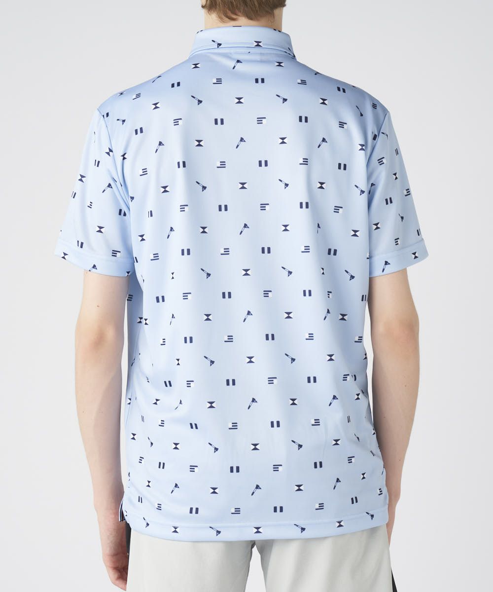 フラッグなど、ゴルフにちなんだデザインがちりばめられたおしゃれな半袖シャツ。