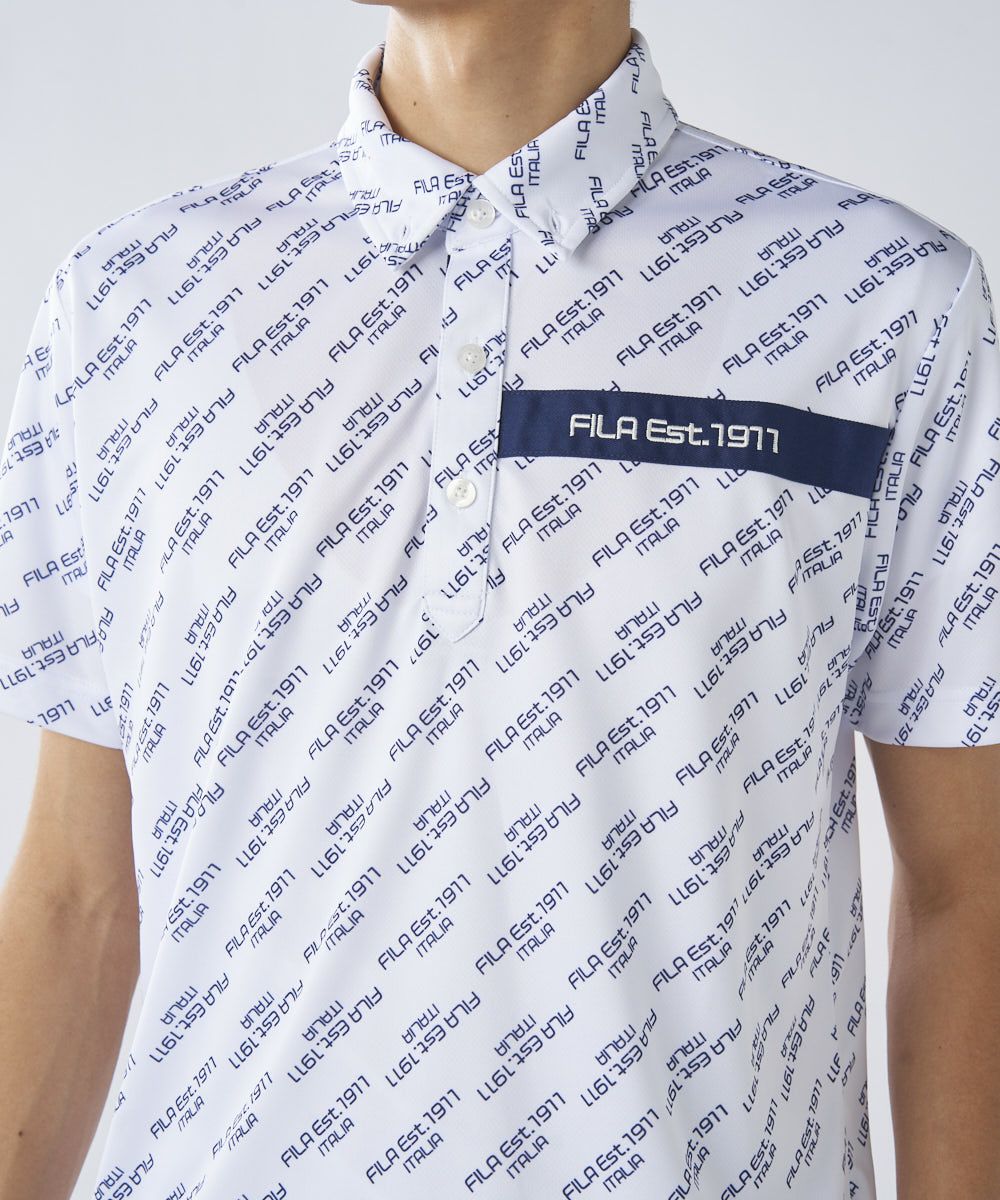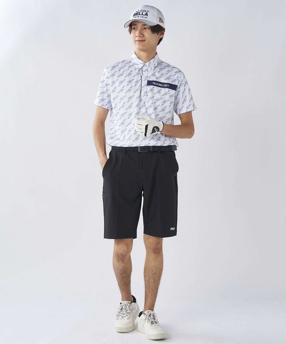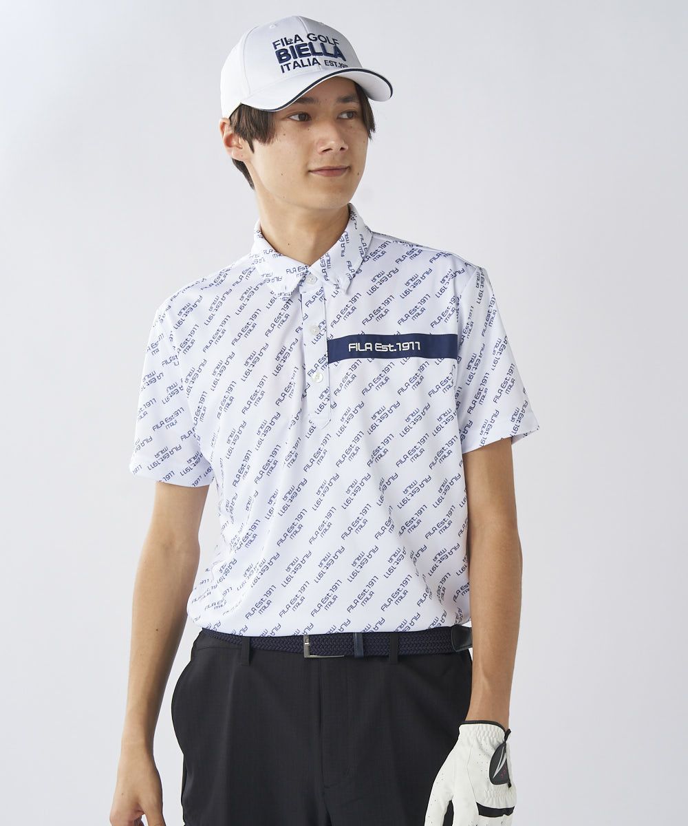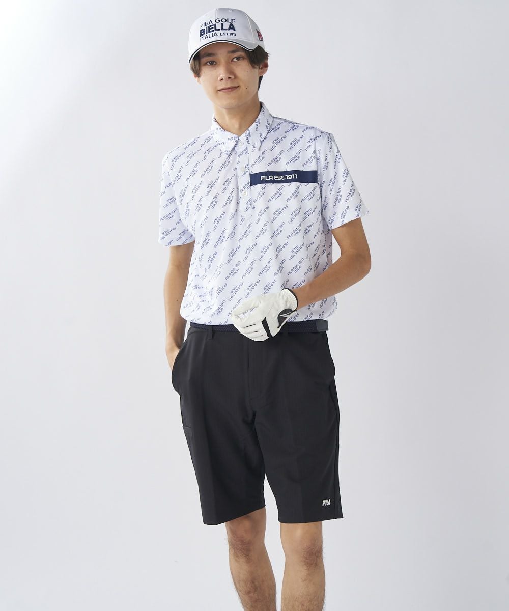 ロゴ柄ががおしゃれな半袖シャツ。柄シャツの中でも、ゴルフ以外でも着やすいデザインで、普段使いにもおすすめです。ベーシックカラーなので、カラーボトムスとのコーディネートも楽しめます。