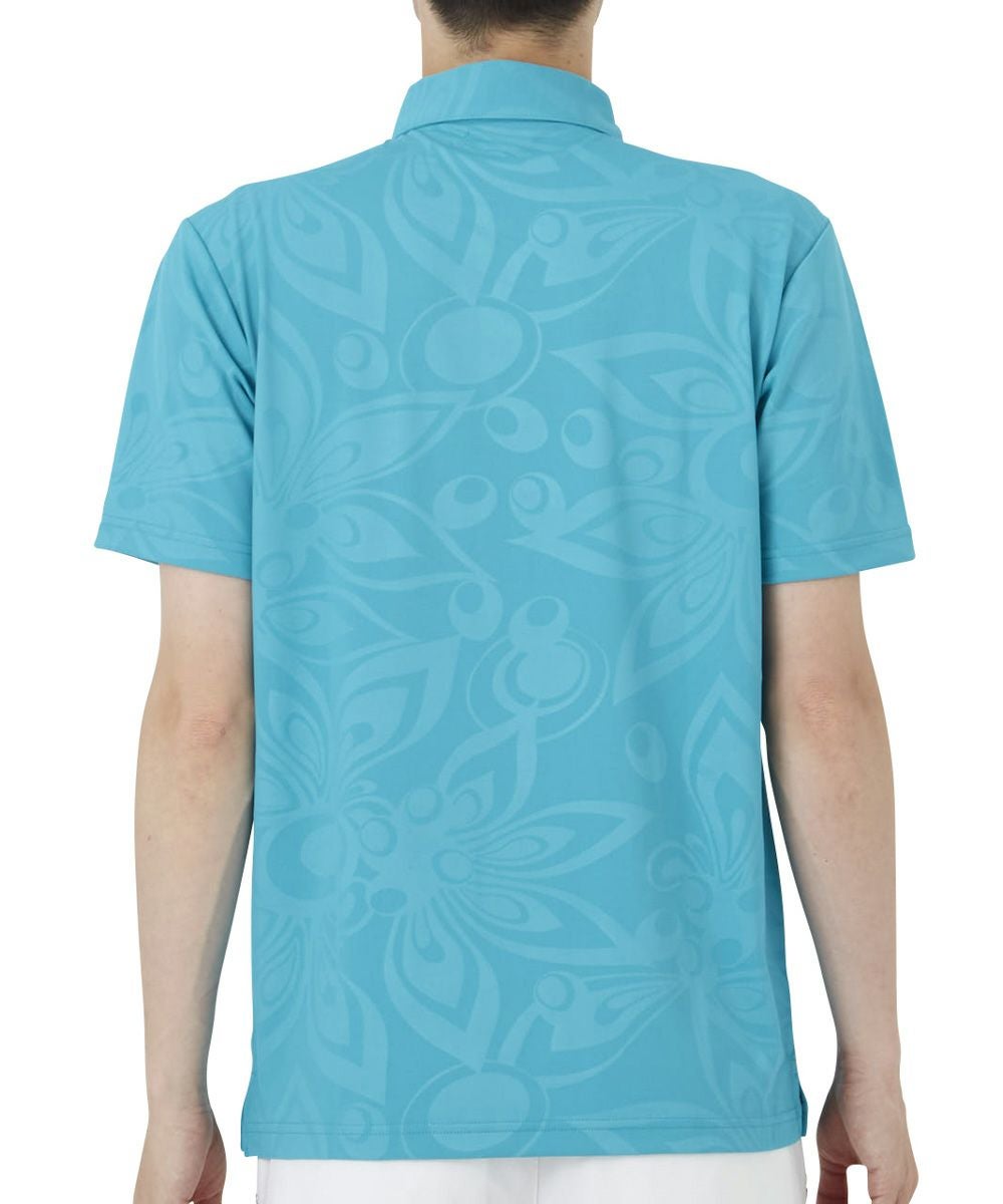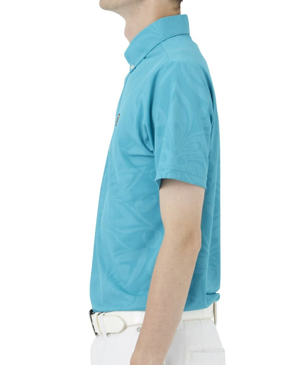 メンズ エンボス半袖ポロシャツ ターコイズ 吸汗速乾 UV