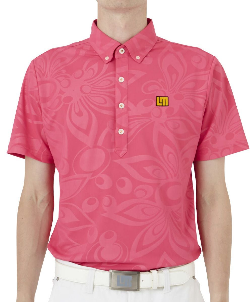メンズ エンボス半袖ポロシャツ ピンク 吸汗速乾 UV