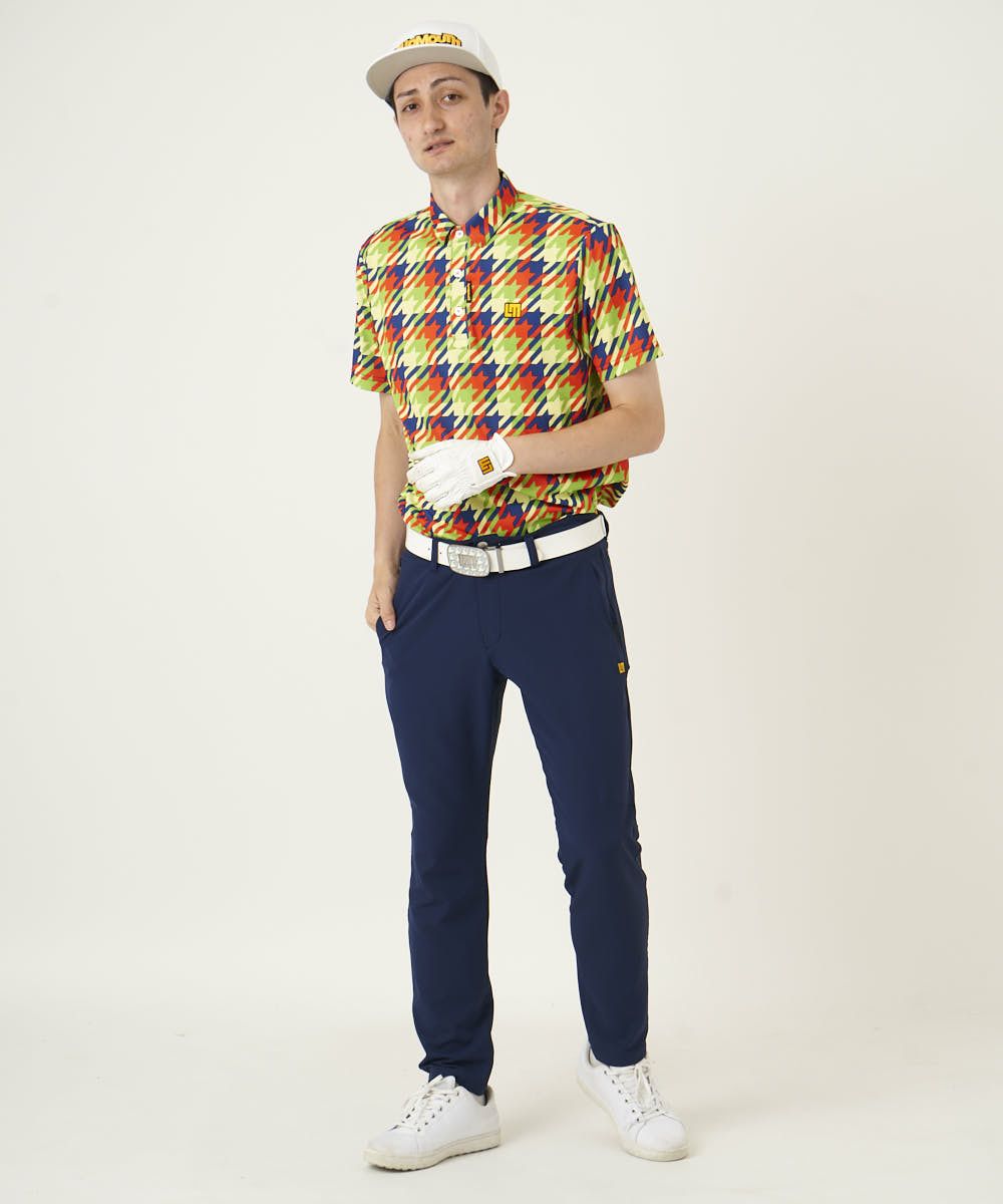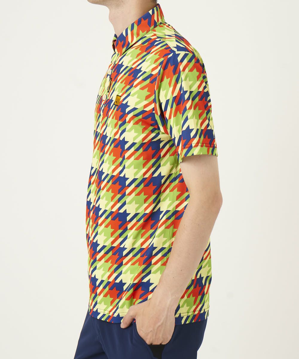 サラッとした肌触りのポリエステル素材を使用した 柄半袖シャツ。タイポグラフィック柄を打ち出しに今シーズンのインパクトのある柄を展開。