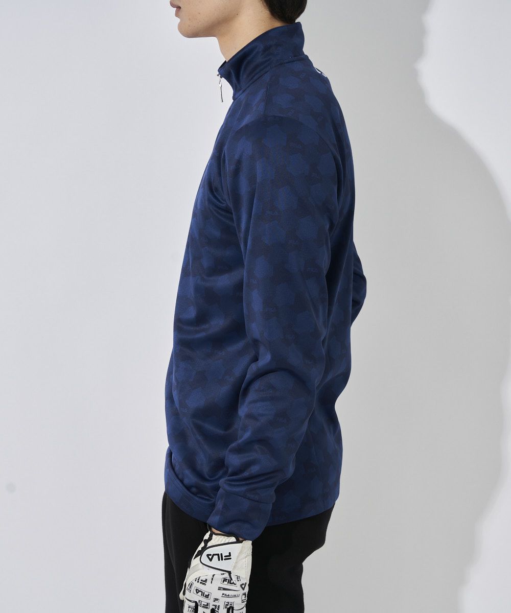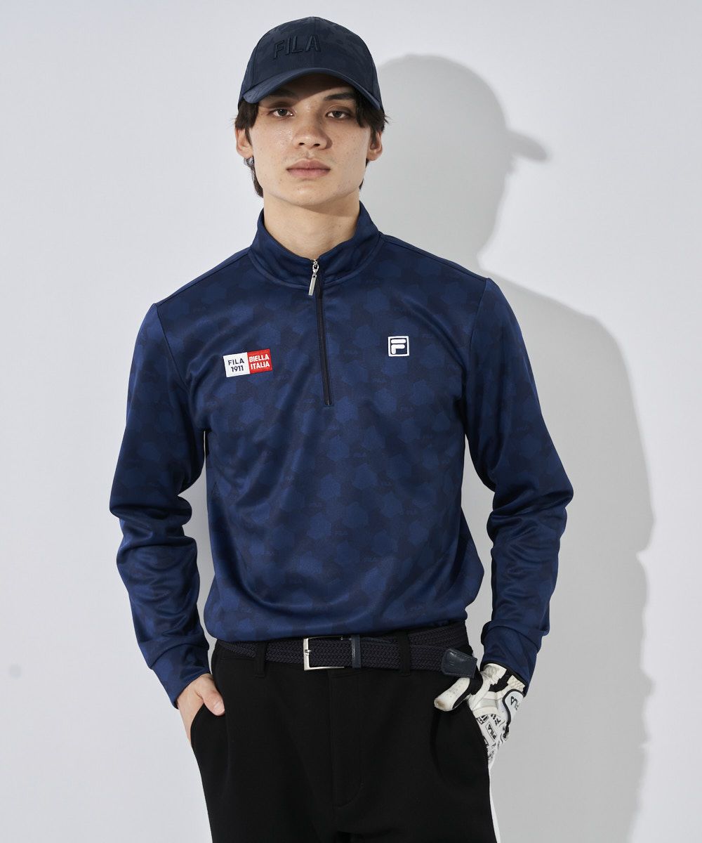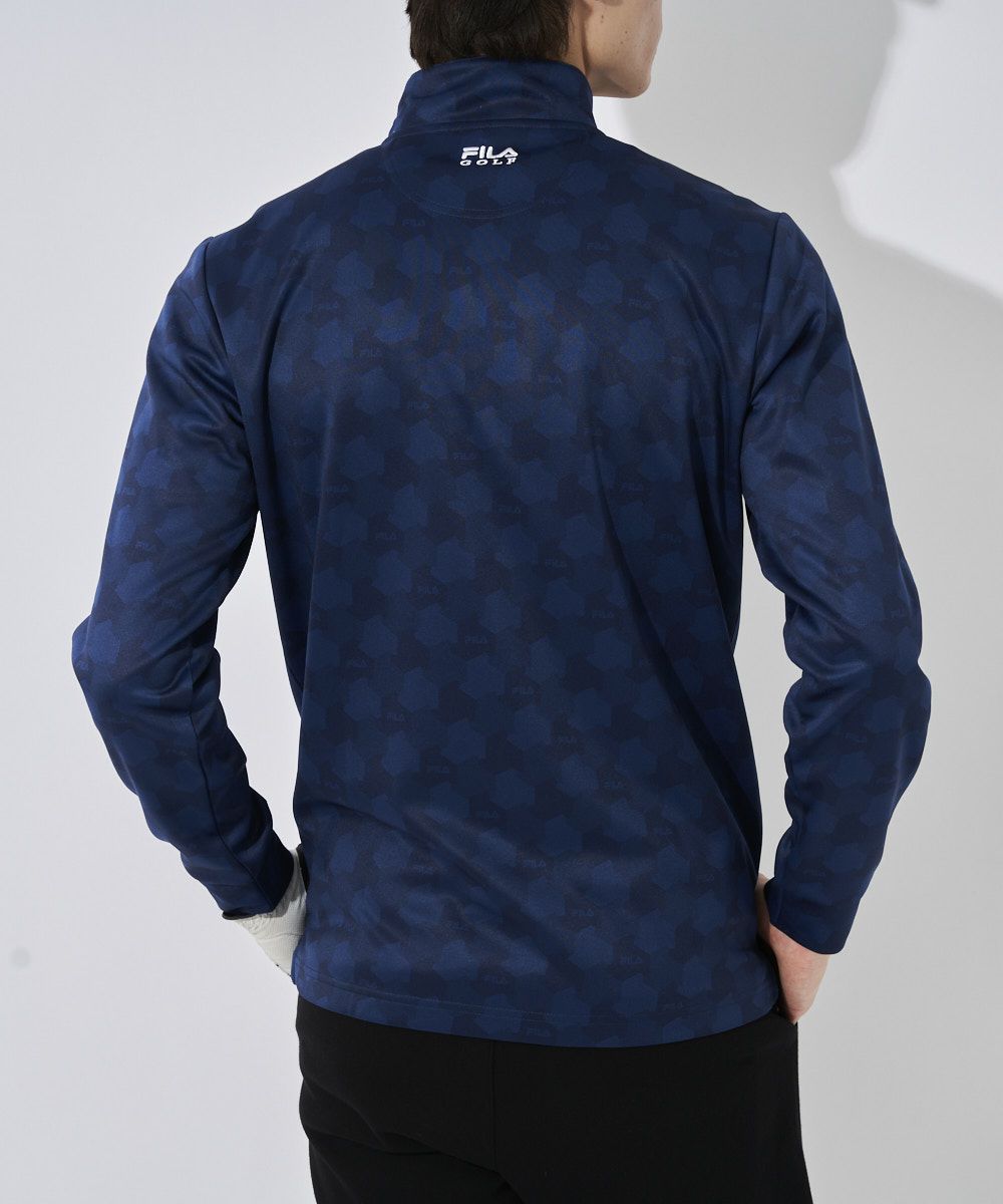 さりげない柄が全身にデザインされた大人な一枚はゴルフシーンにぴったり。