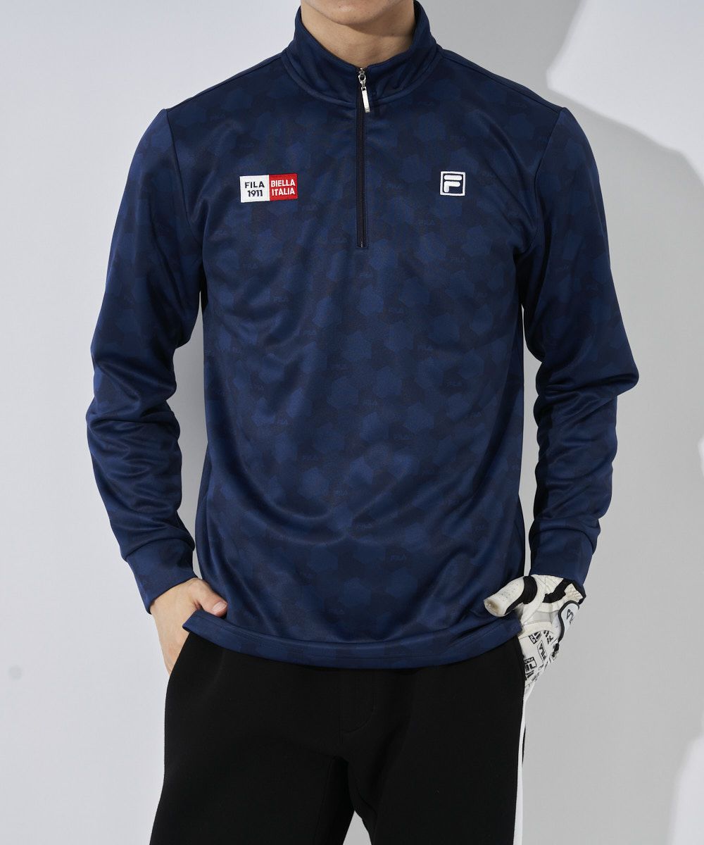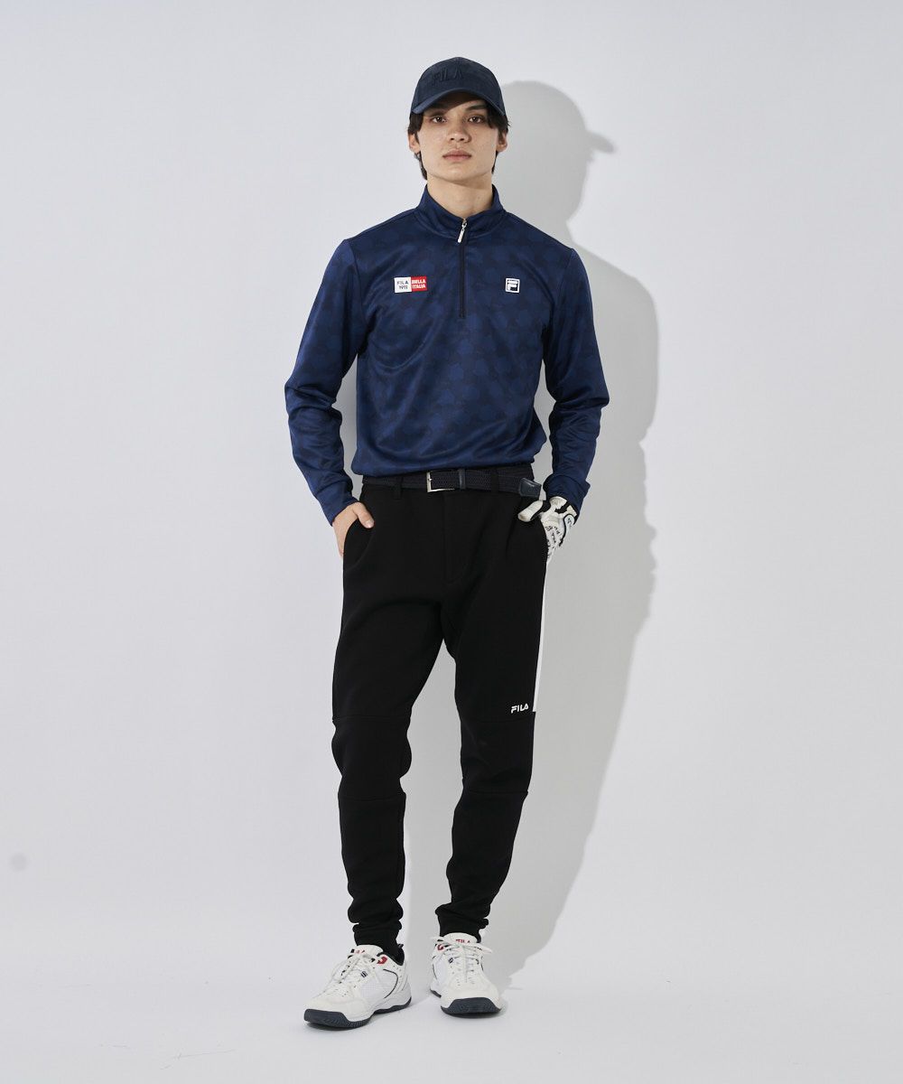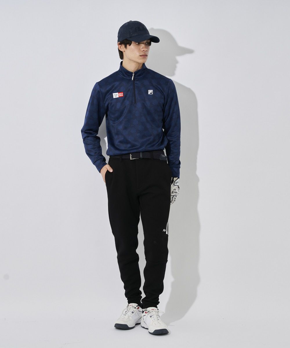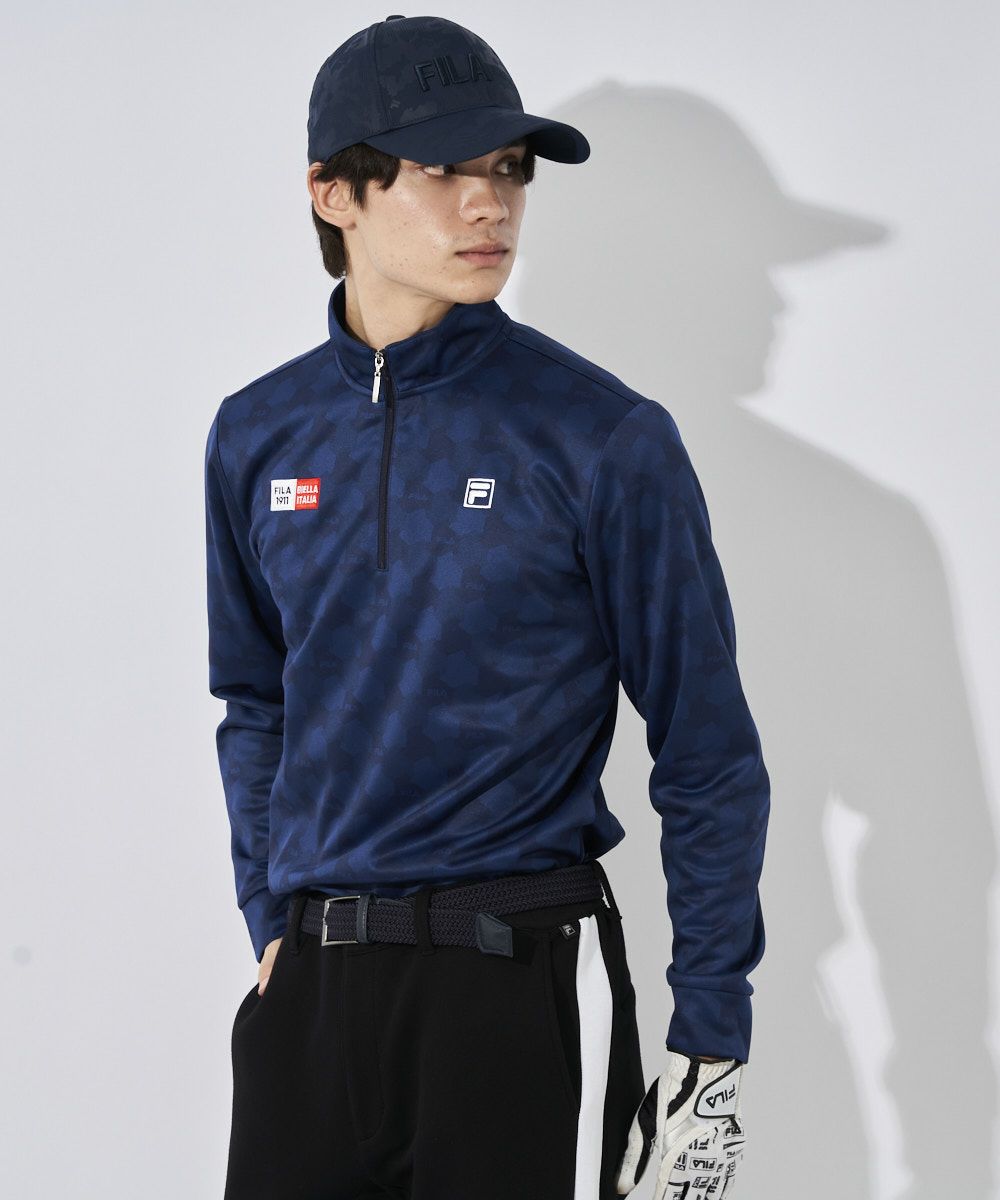 さりげない柄が全身にデザインされた大人な一枚はゴルフシーンにぴったり。