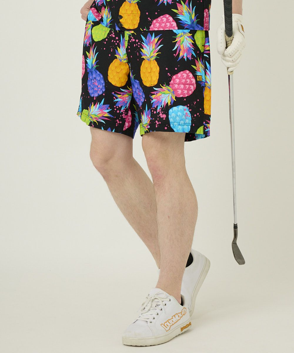 メンズ ショートパンツ ストレッチサッカー素材 エレクトリックパイナップルズ UV/ストレッチ/接触冷感