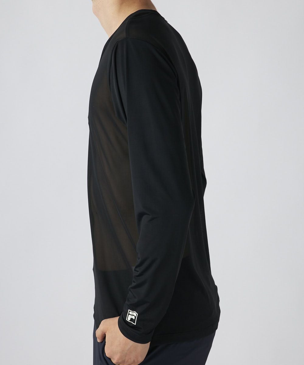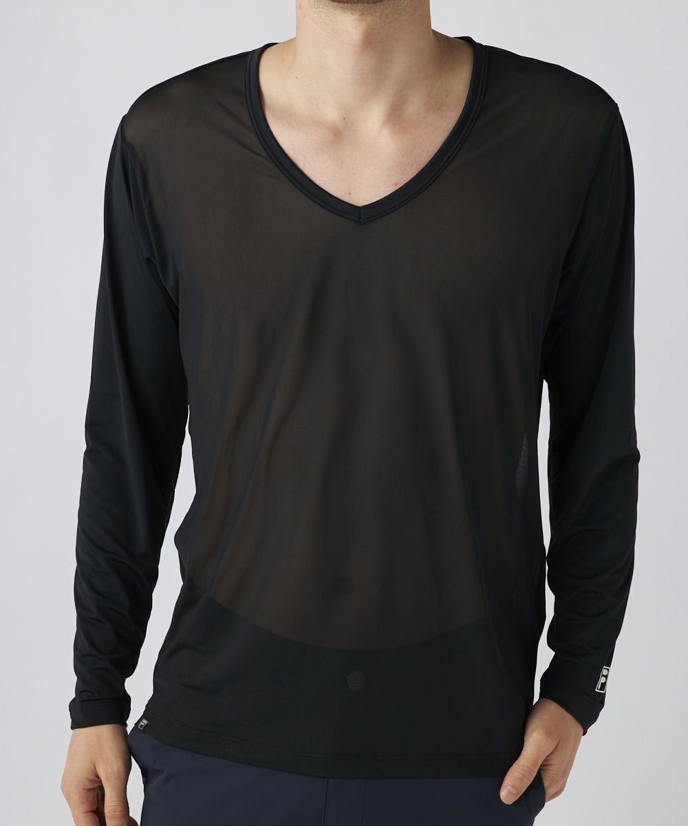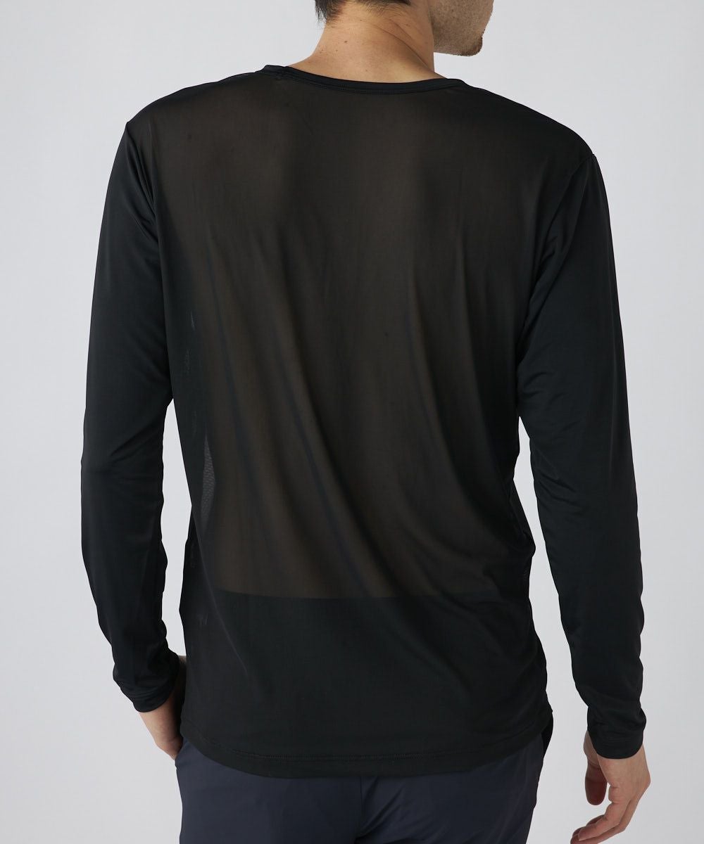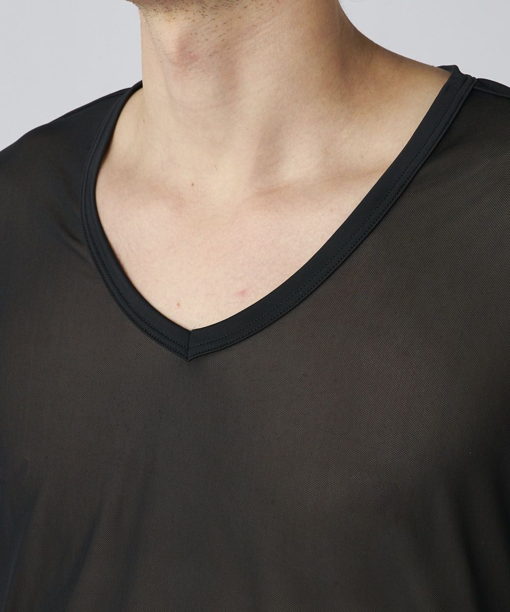 接触冷感の機能糸を使用したベア天竺Vインナー。身頃をメッシュ素材で通気性に富んだデザインです。合わせやすいベーシックカラー展開で、シャツとのレイヤードを考えたサイズ感になっています。吸汗速乾、UVカット機能があります。