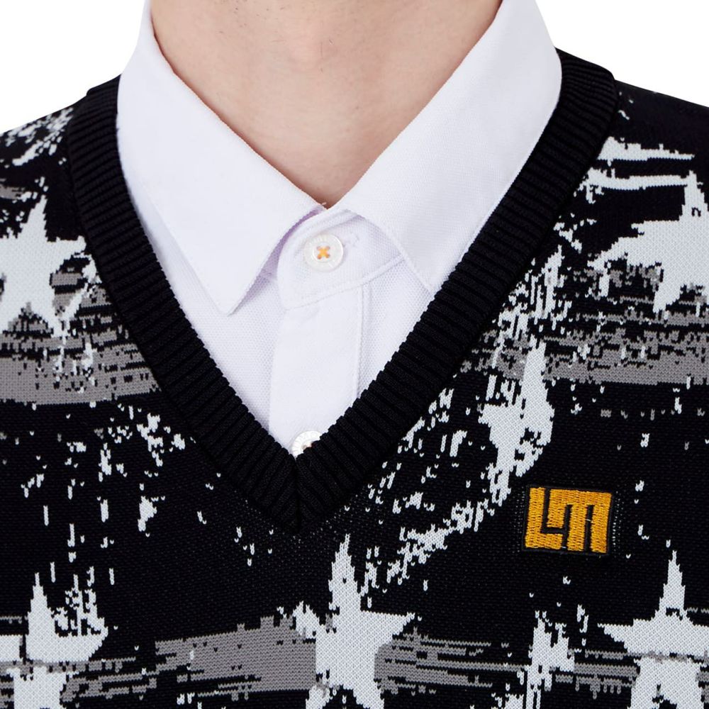 軽くて動きやすいニット糸を使用無地インナーとの相性も良いスター柄ニットベスト。春夏らしく後身はメッシュ編みで涼しい着心地のアイテム。