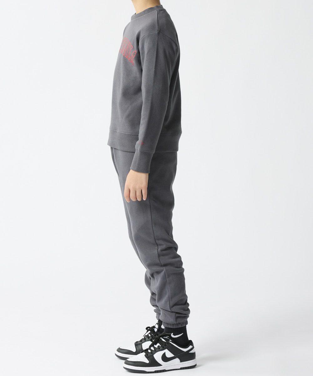 着回ししやすいクルーネックのスウェットと、履き心地抜群のスウェットパンツのセットアップ。