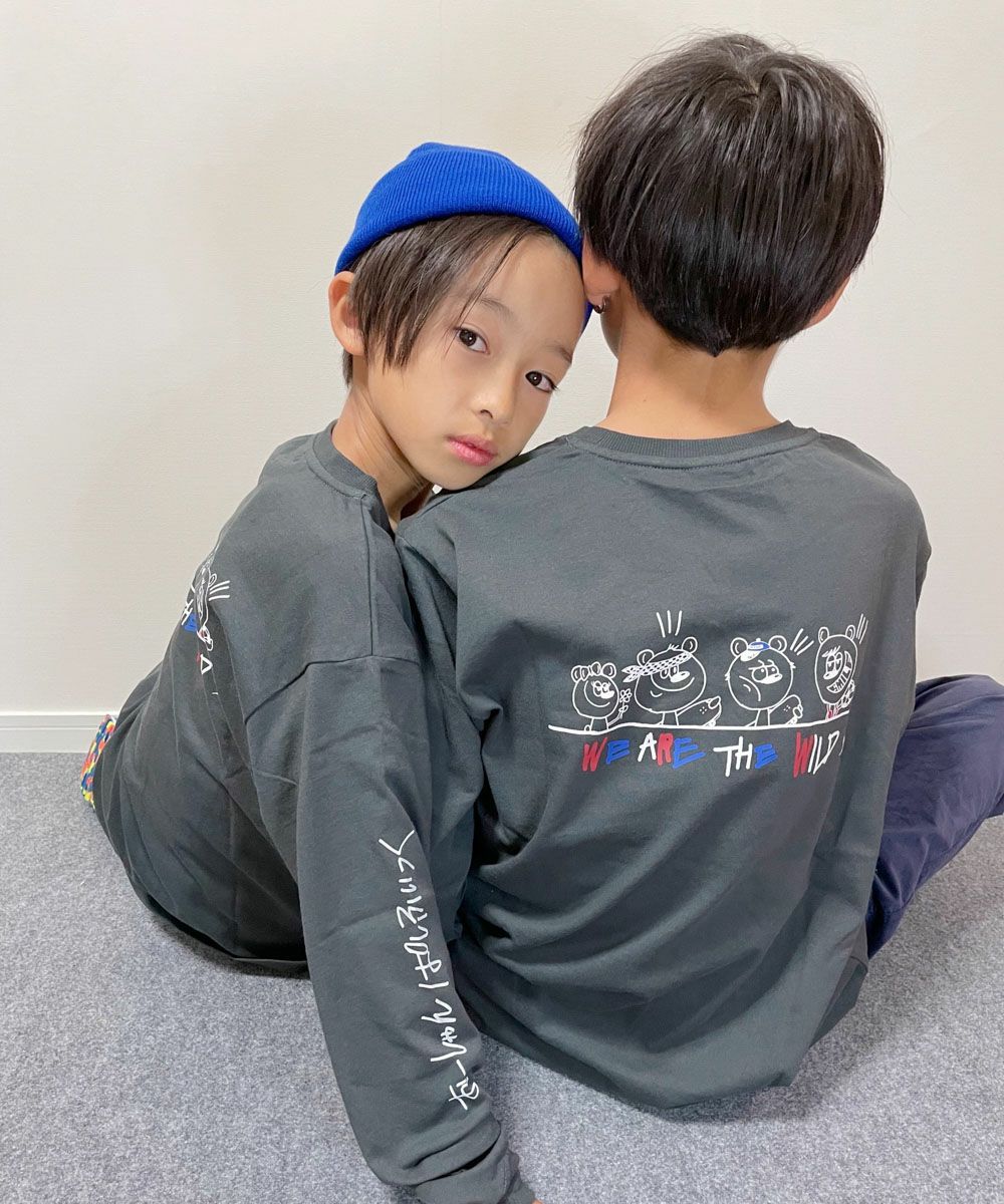 人気インフルエンサーRIYとムラサキスポーツとOPのトリプルコラボ企画!今回のメインキャラクターは OP の生まれたカリフォルニアの州旗にも登場しているクマ。その中に RIY の好きな赤と青のカラーをポイントに、大好きなサッカーボールも入れ込みました。おともだち兄弟と集合してこれから遊びに行こう!というシーンを MOMOKA YOSHITAKE のタッチで表現。さりげなく入っている SMILE の文字もポイントです。袖のロゴには車や自転車のライトに反射するリフレクトプリントを採用し、塾や部活の帰り道も安心です。