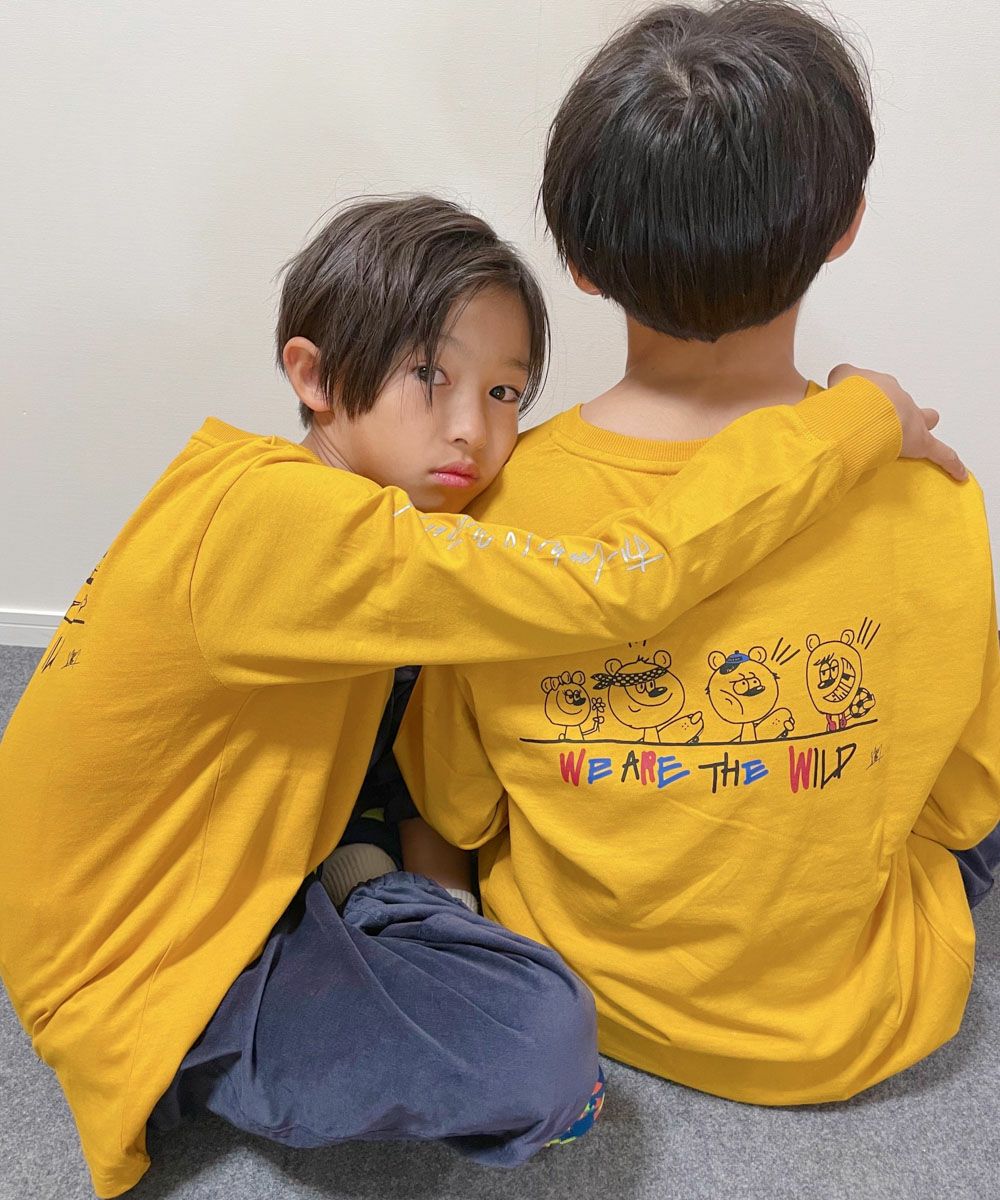 人気インフルエンサーRIYとムラサキスポーツとOPのトリプルコラボ企画!今回のメインキャラクターは OP の生まれたカリフォルニアの州旗にも登場しているクマ。その中に RIY の好きな赤と青のカラーをポイントに、大好きなサッカーボールも入れ込みました。おともだち兄弟と集合してこれから遊びに行こう!というシーンを MOMOKA YOSHITAKE のタッチで表現。さりげなく入っている SMILE の文字もポイントです。袖のロゴには車や自転車のライトに反射するリフレクトプリントを採用し、塾や部活の帰り道も安心です。