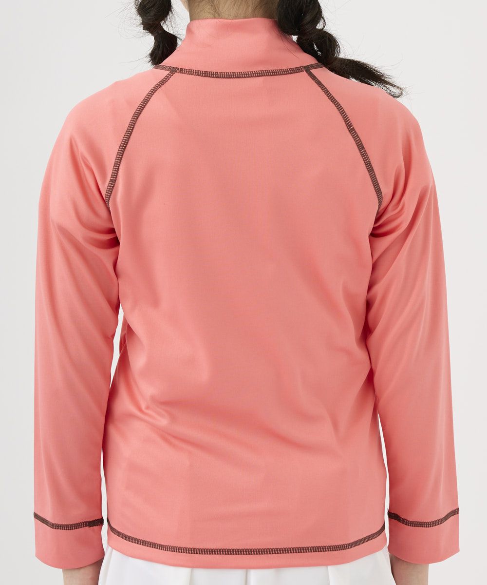 前開きのフルジップなので着脱も簡単♪ 肩まわりの動きを妨げないラグランスリーブを採用しています。 首元にはファスナーのジップでのケガを防ぐチンガード付き。 シンプルかつ機能的なUVウェア♪お値段も魅力的です!