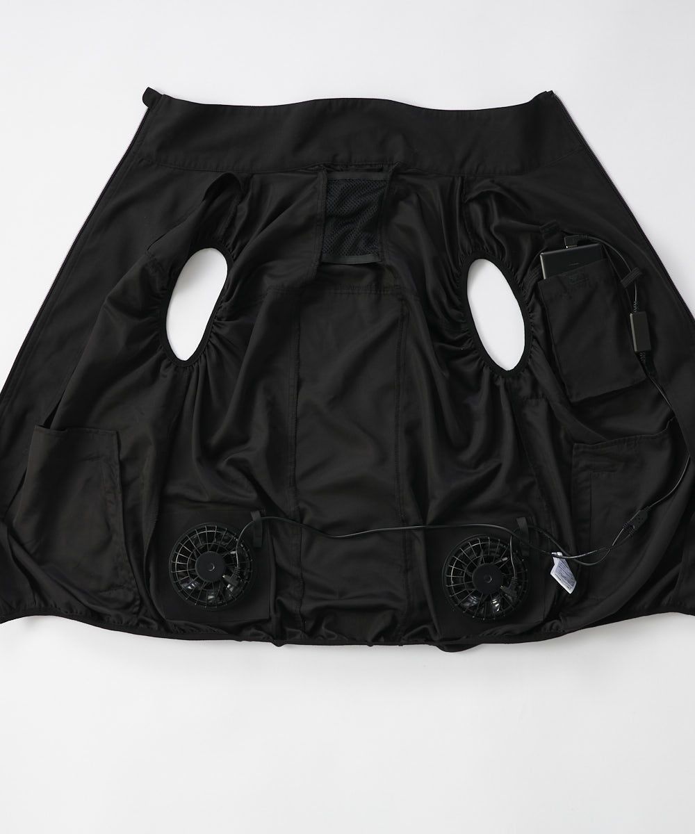 取り外し可能なファンはベスト内に風を循環させることで、効果的に体温を下げます。