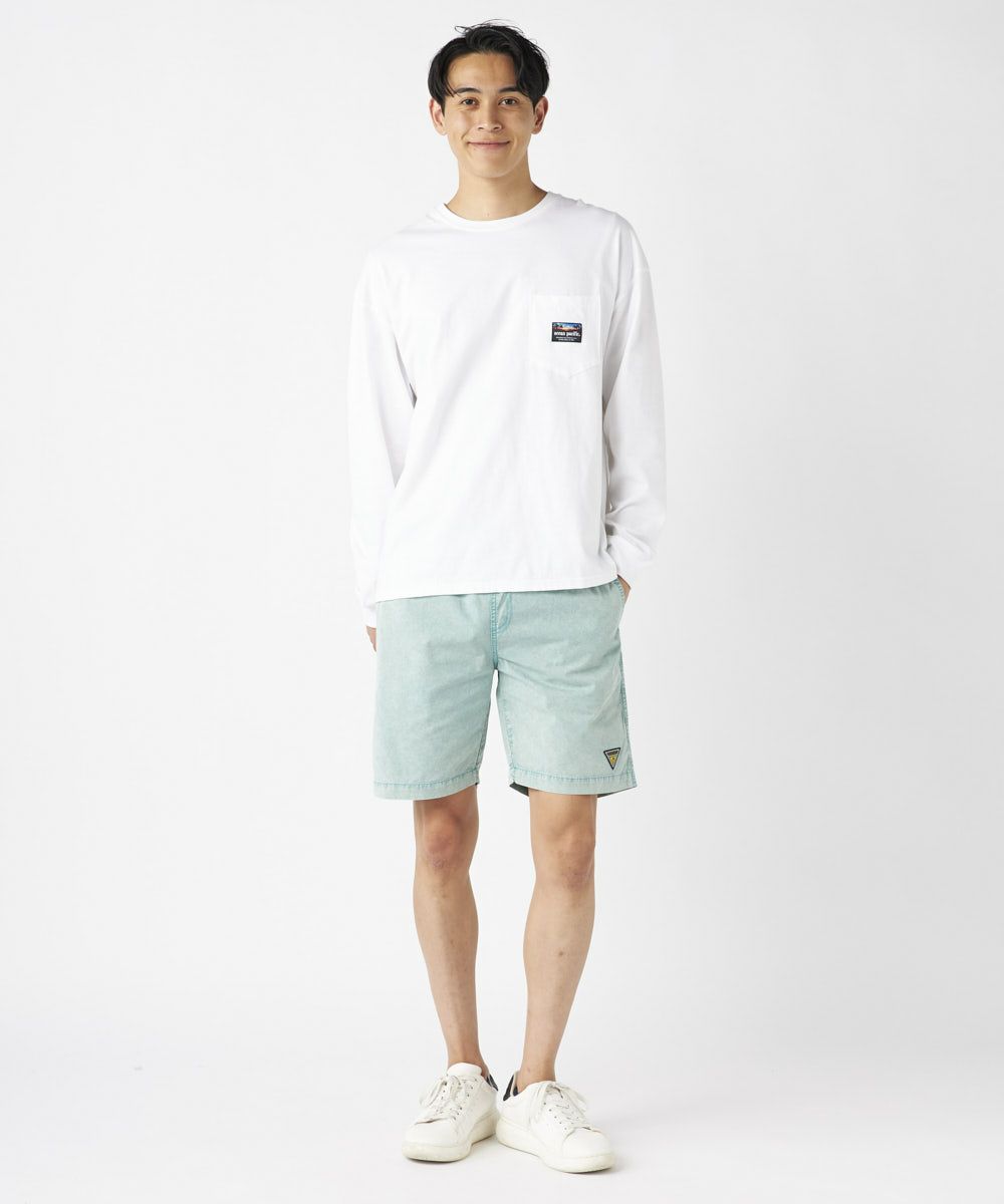 新アイテムのピグメントウォークショーツ。綿ツイル製品染めの加工を施すことで よりサーフカジュアルの印象を持たせています。