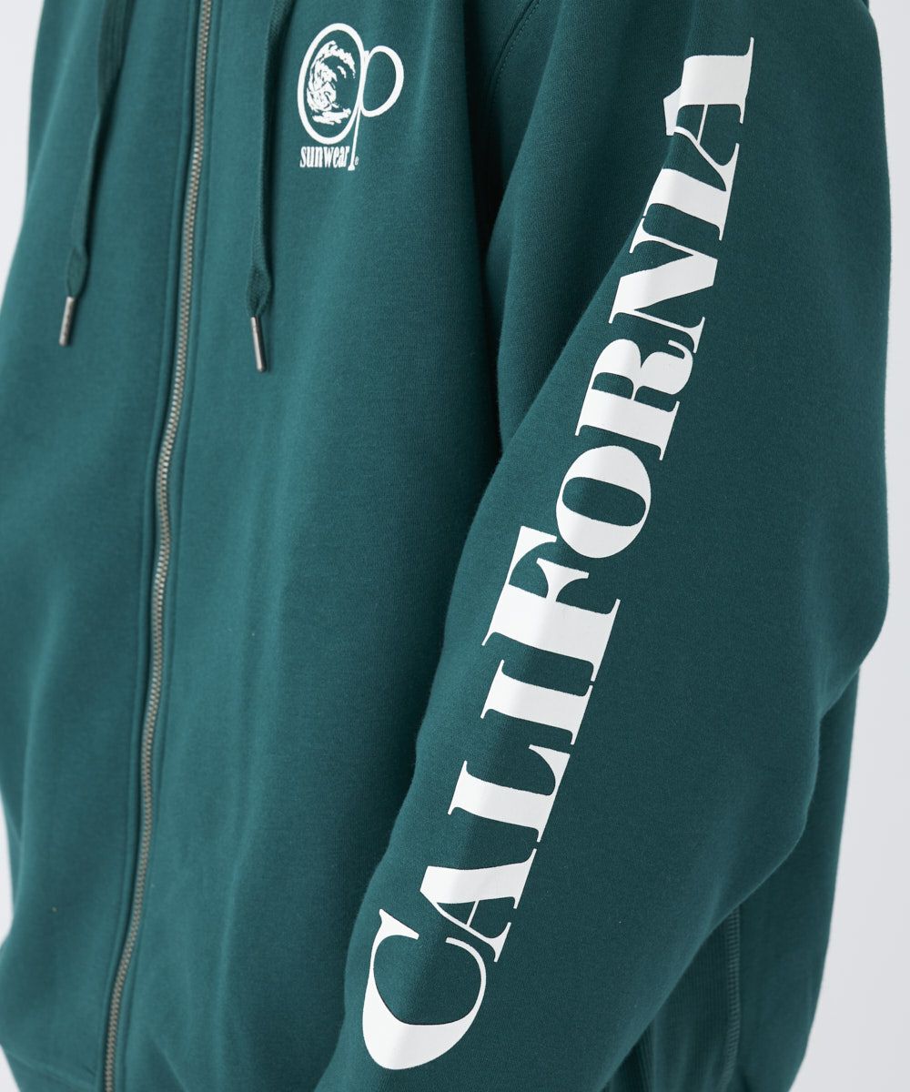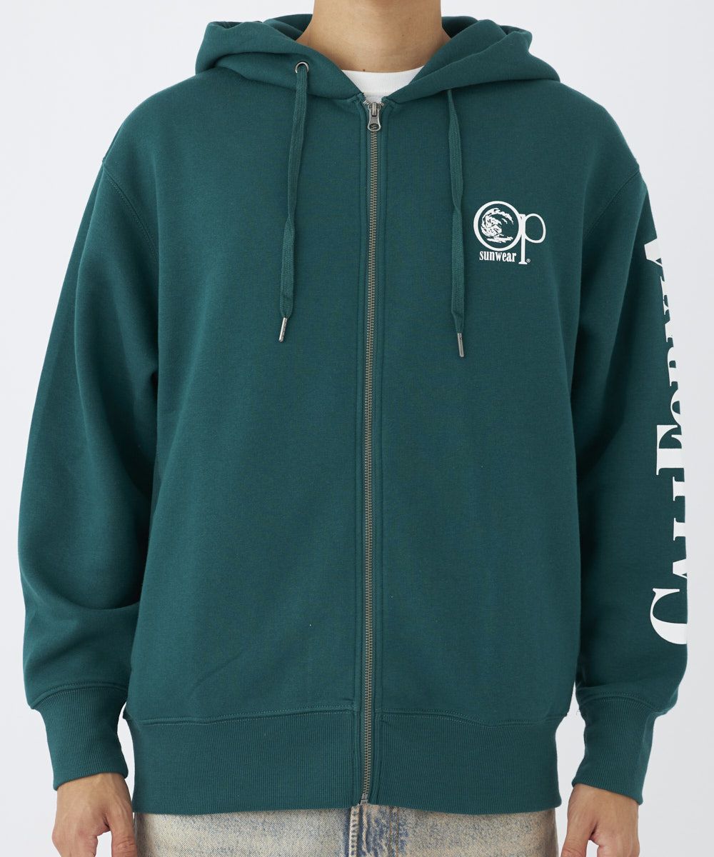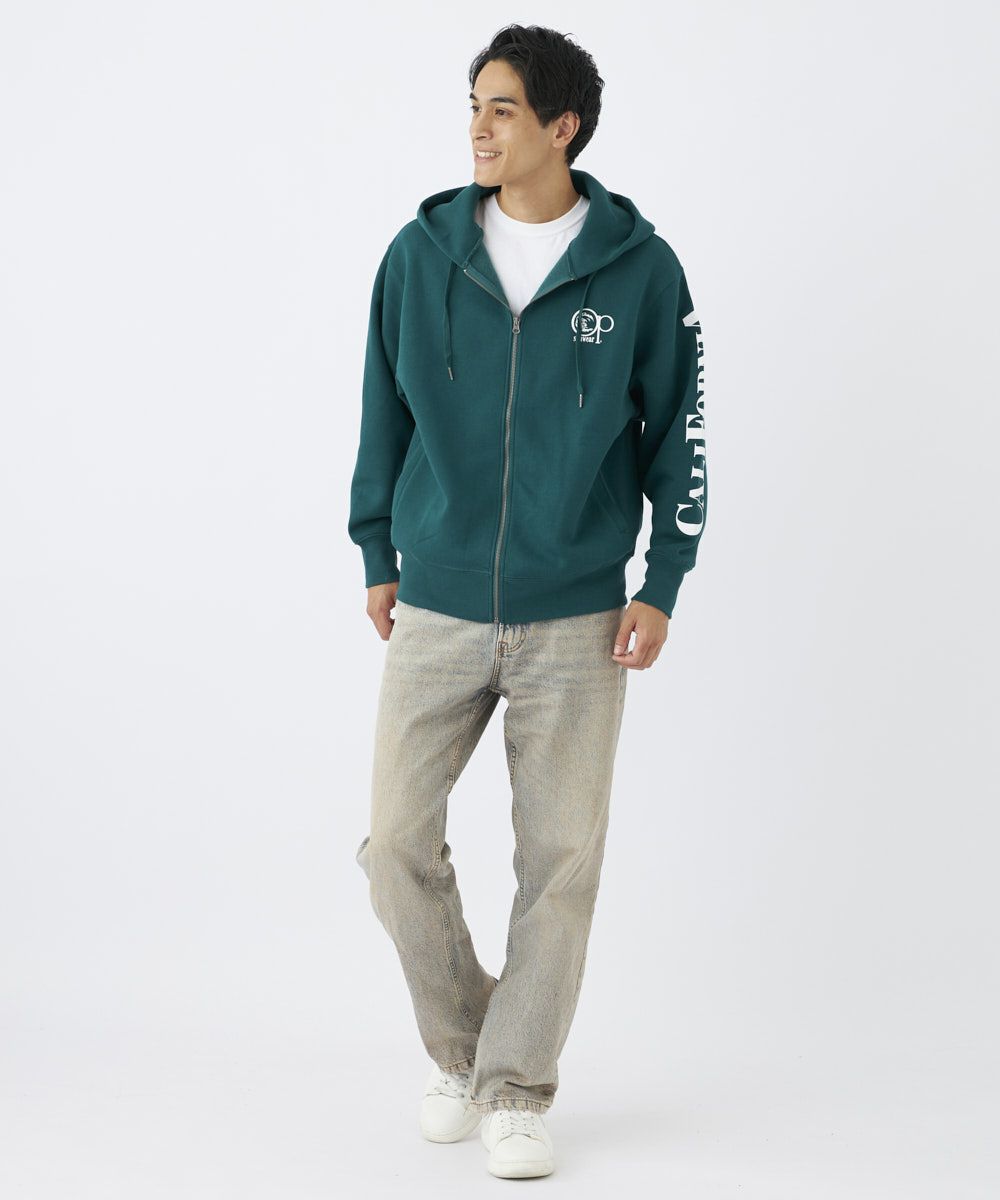 柔らかくて暖かい裏起毛ジッププルパーカー。背面プリントがポイントのデザイン性のあるスウェット