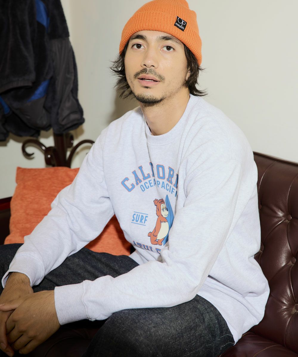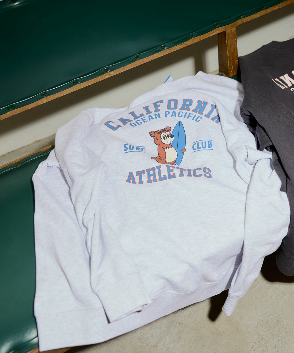 OPの定番アイコン「カリフォルニアベア」がフロントにデザインされたクルースウェットが登場。