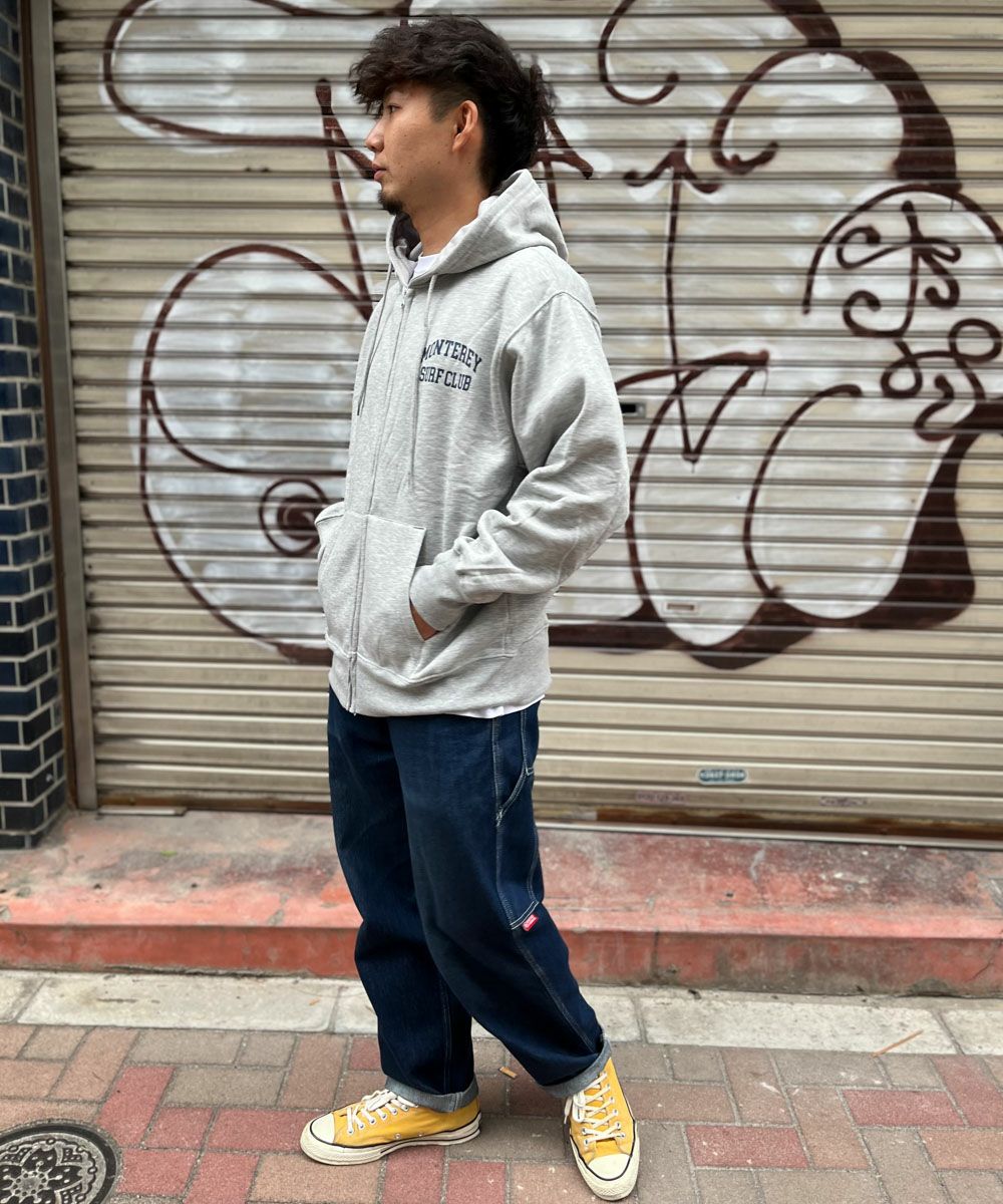 秋口には羽織りとして、寒くなればインナーでも使いまわししやすいジップパーカー。
