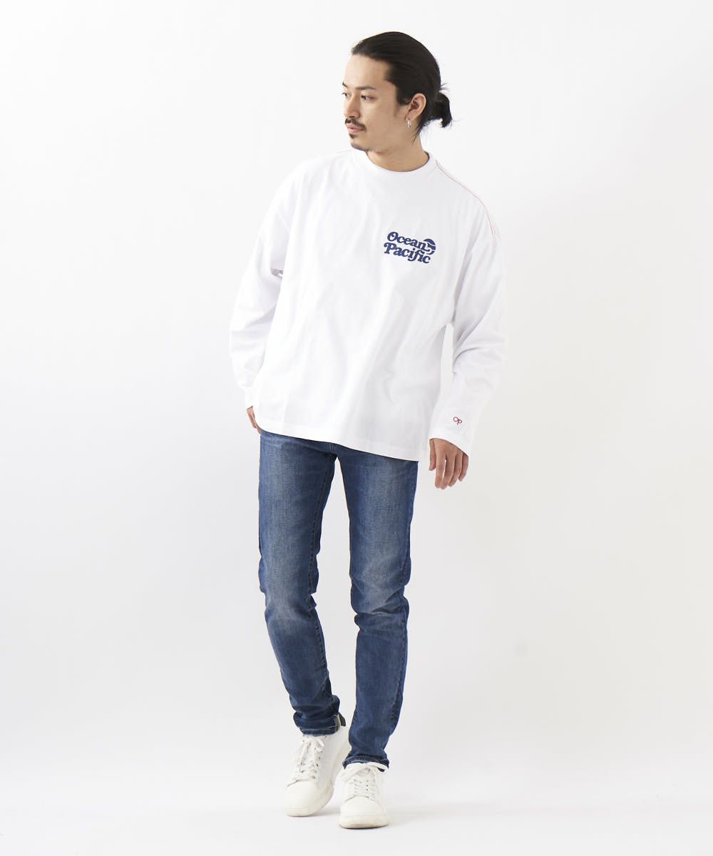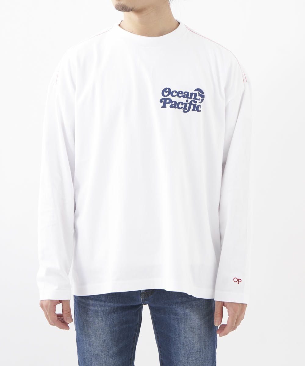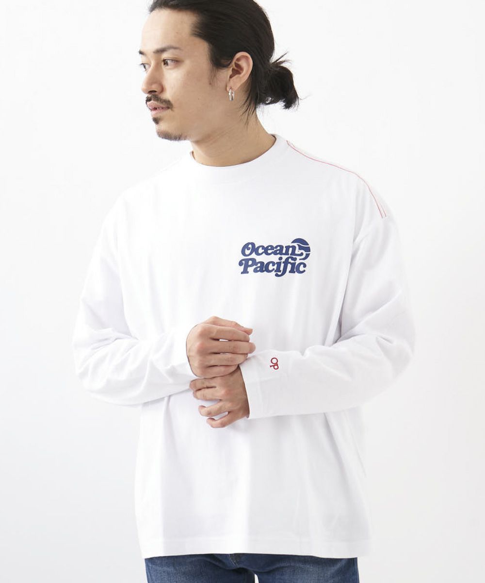 メンズ 配色ステッチロゴ長袖Tシャツ