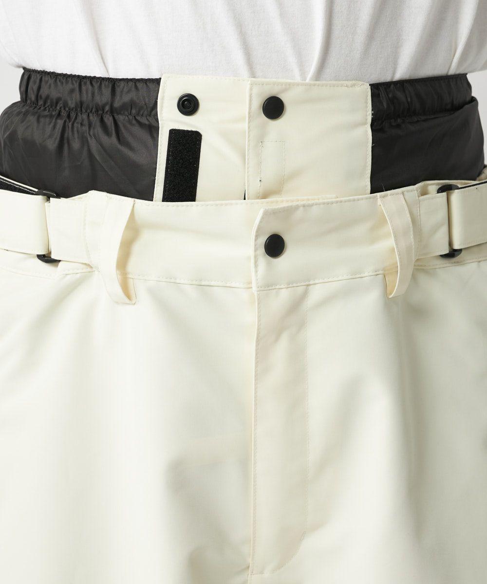リーズナブルな価格設定にもかかわらず、耐水圧10000mlと透湿性5000gで 高機能なメンズスノーパンツ。太めのシルエットで機能性とファッション性を兼ね備えた一着