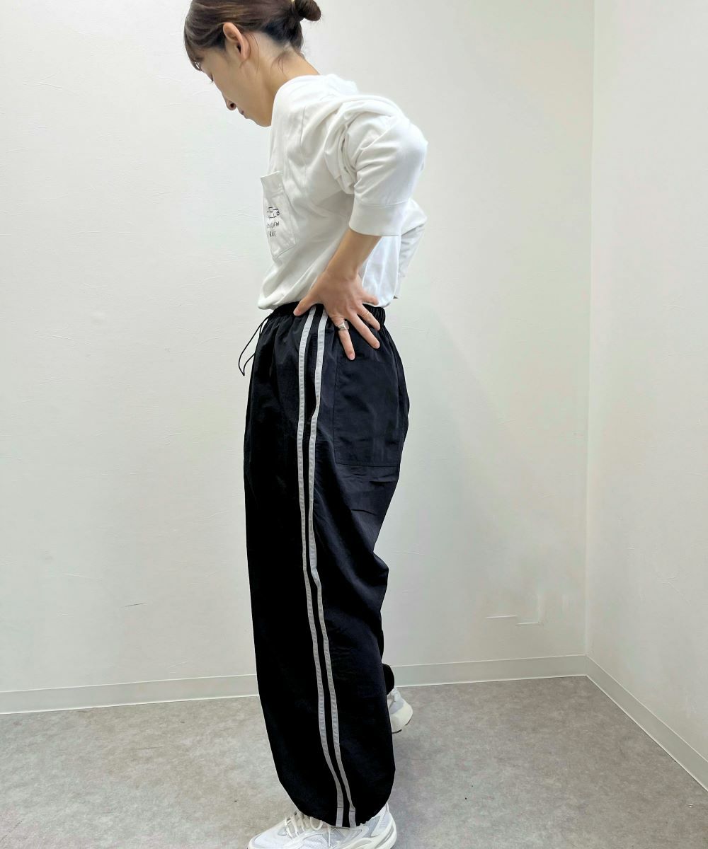 配色のラインとポケットのOPロゴ刺繍がかわいいトラックパンツ。
