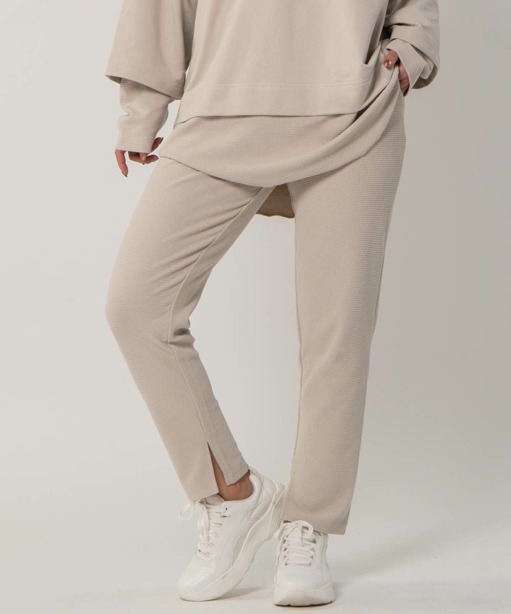 触り心地のよいワッフルパンツ。