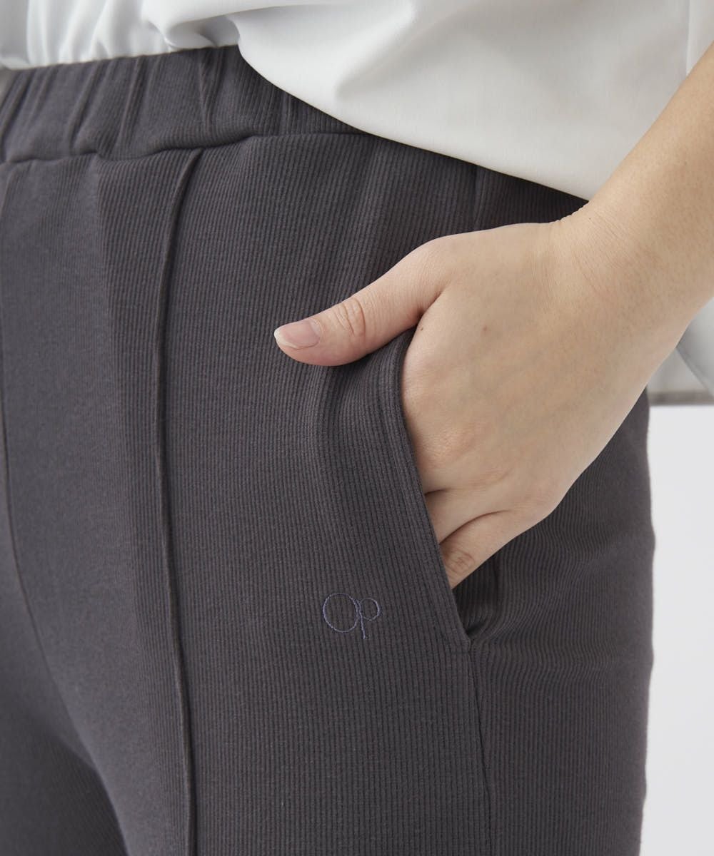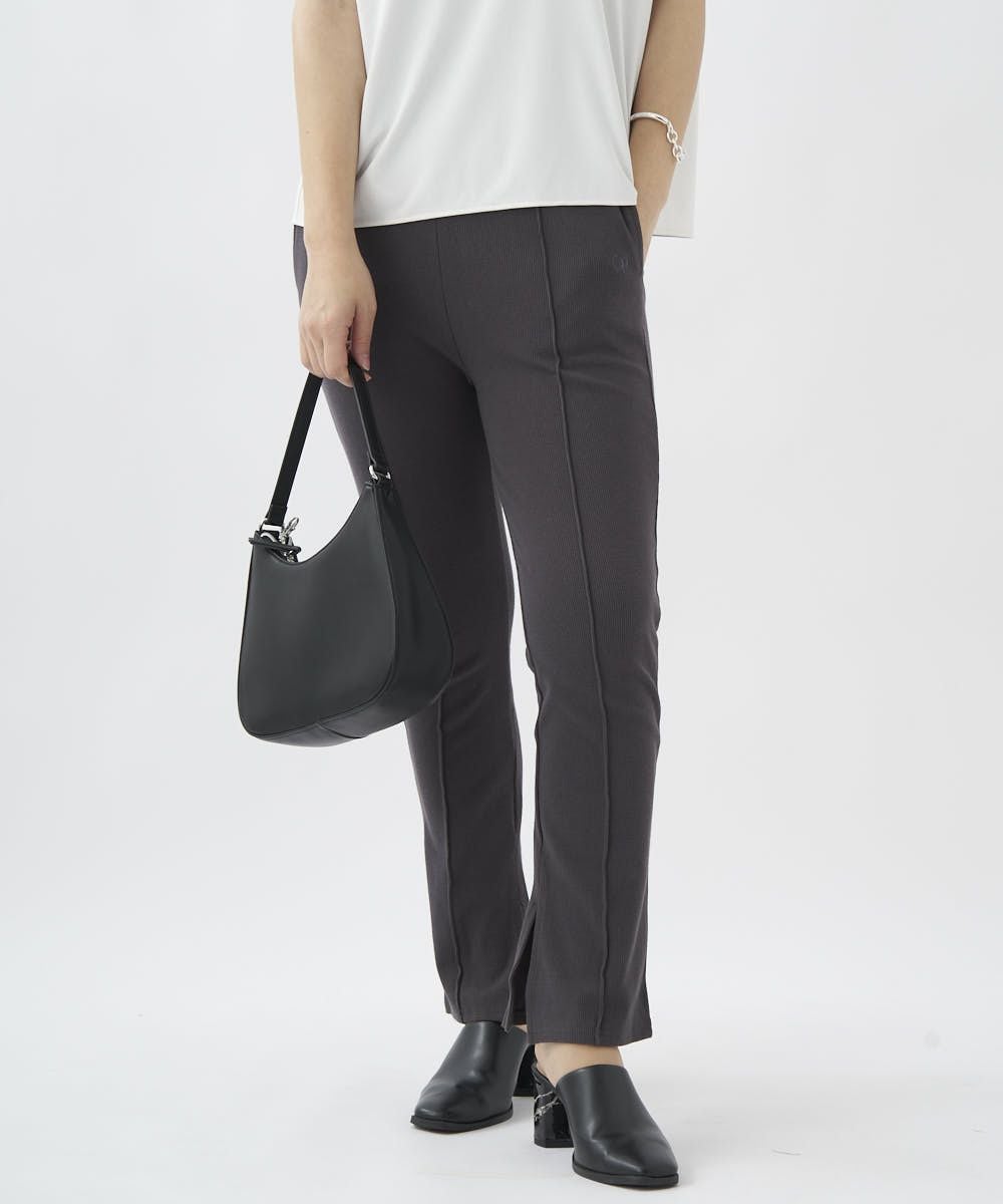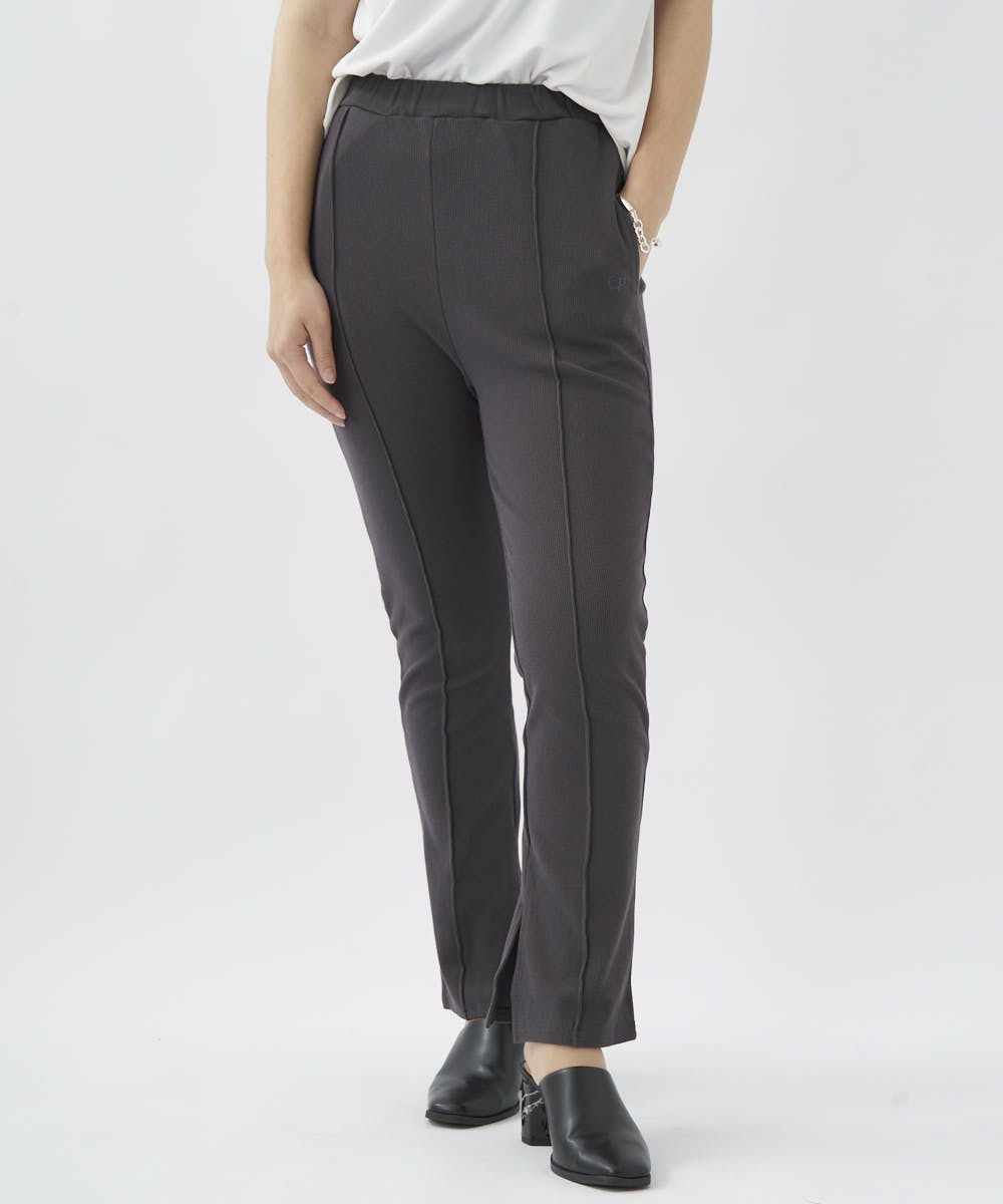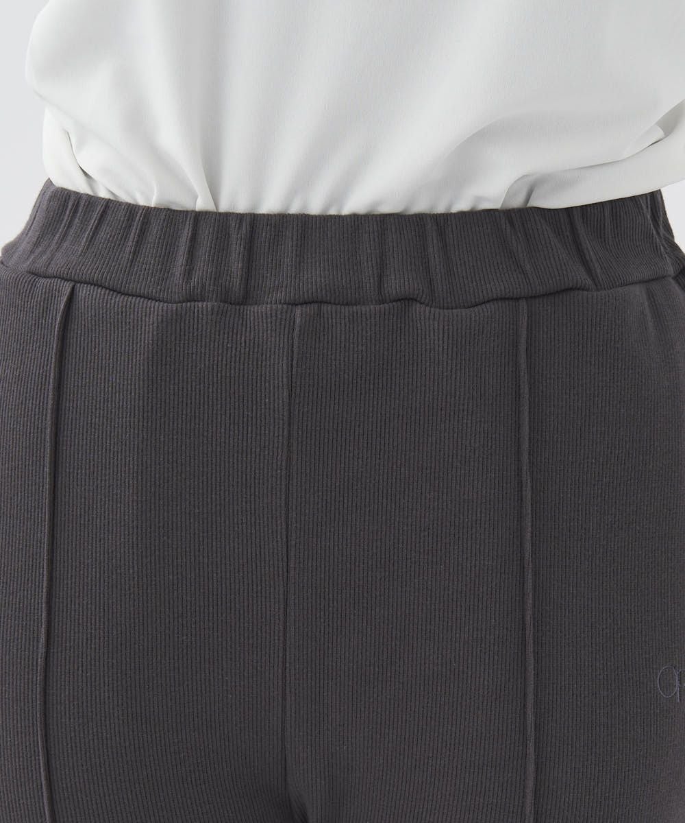 センターにピンタックを入れたリブ素材のイージーパンツ。オーバーサイズのTシャツやスウェットとのコーデがおすすめ。