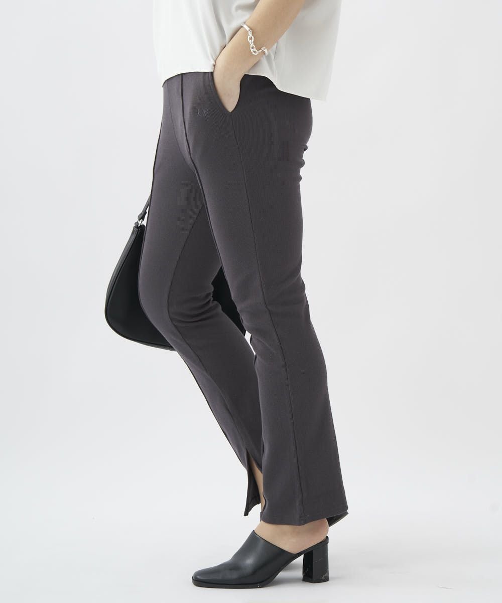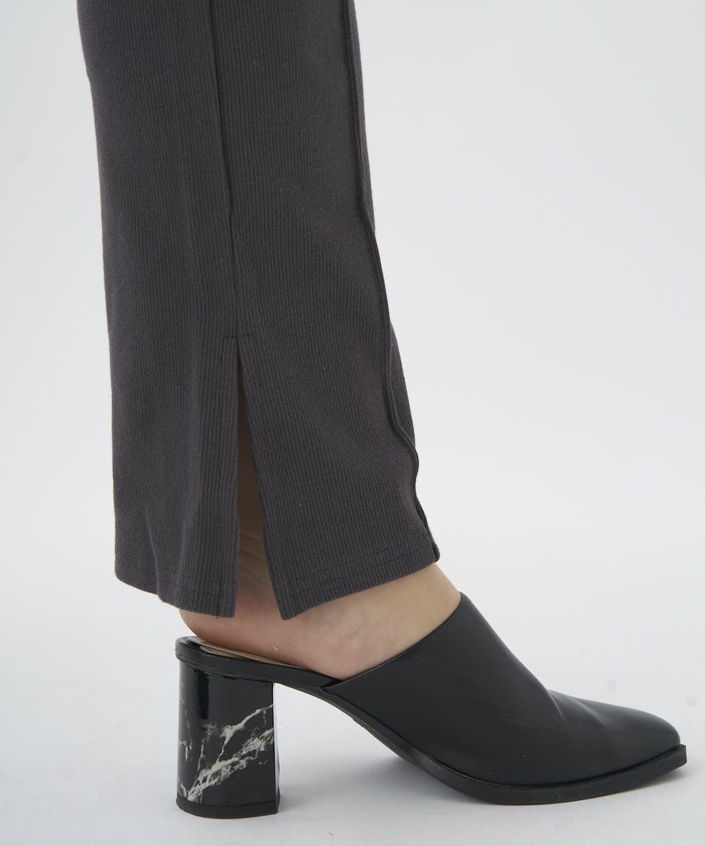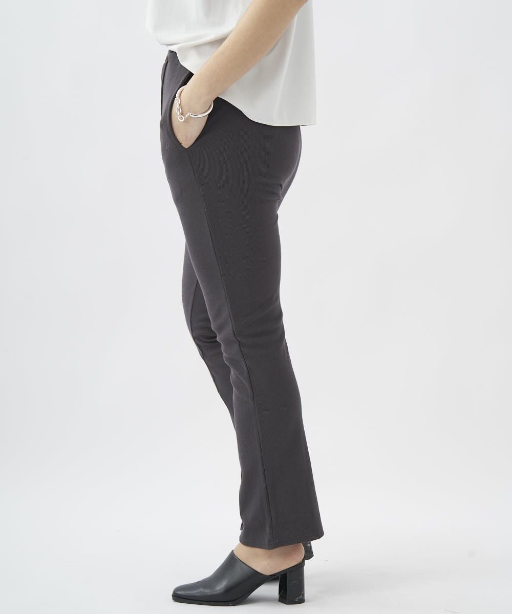 センターにピンタックを入れたリブ素材のイージーパンツ。オーバーサイズのTシャツやスウェットとのコーデがおすすめ。