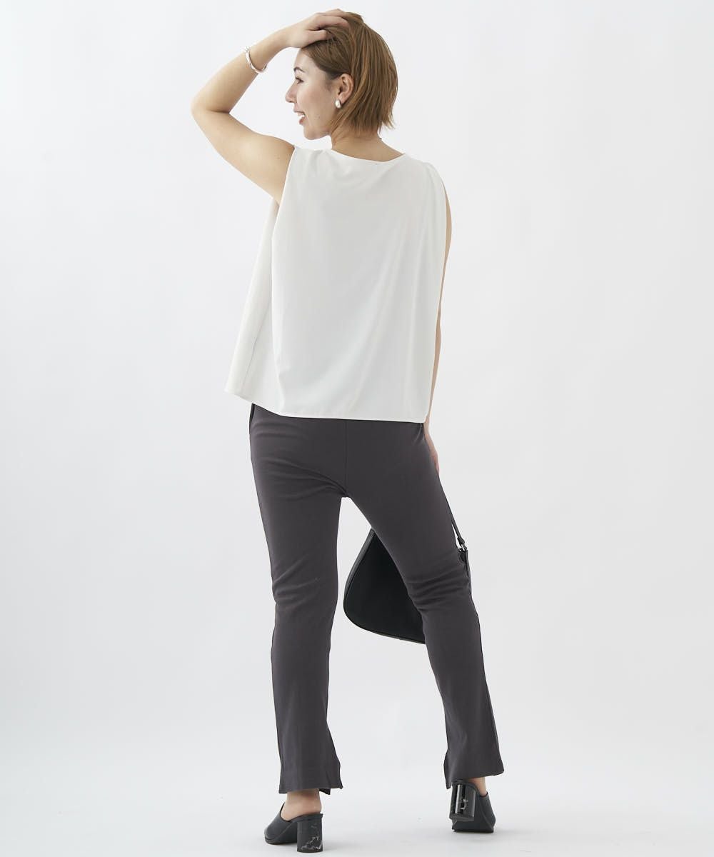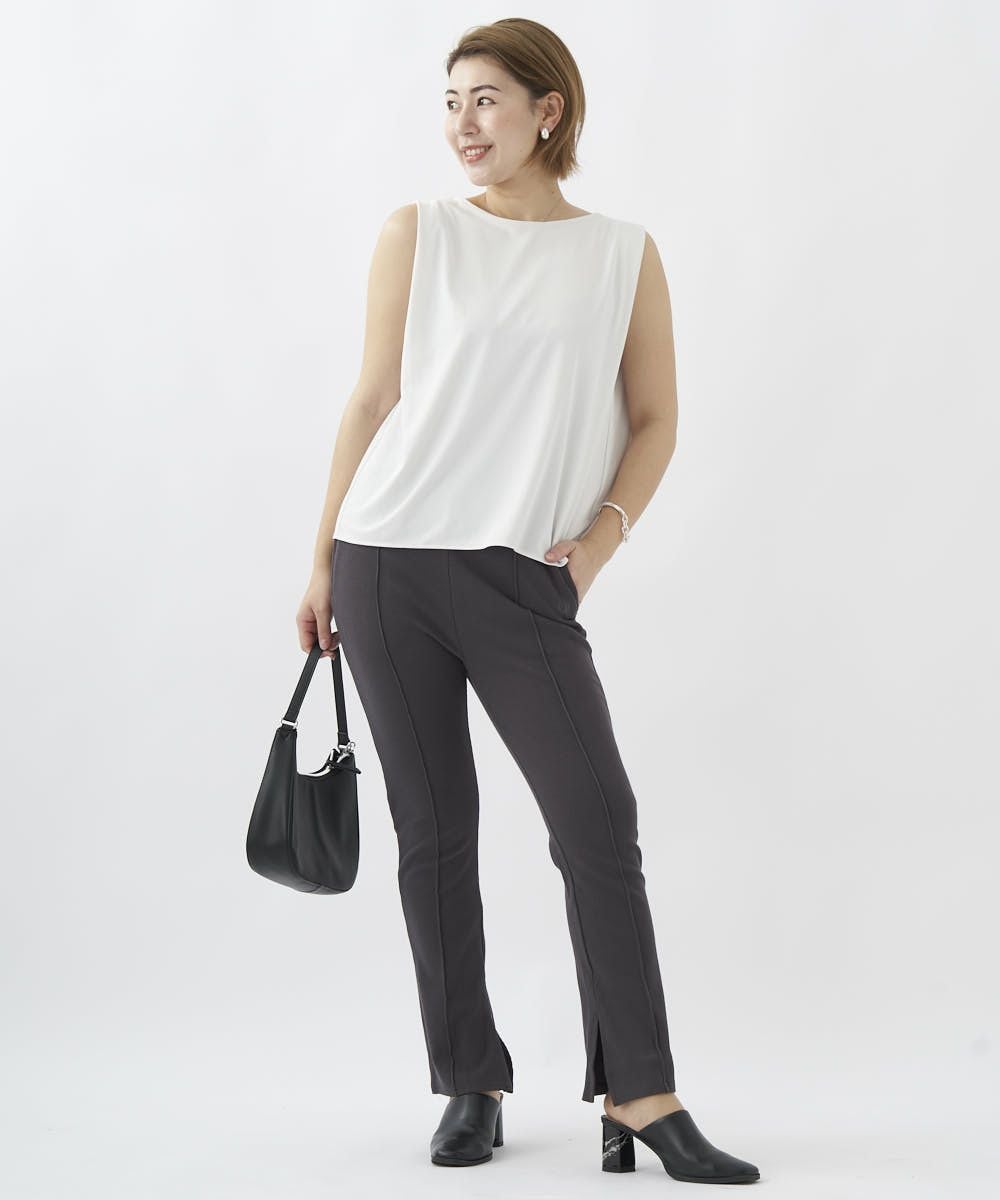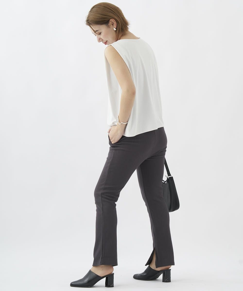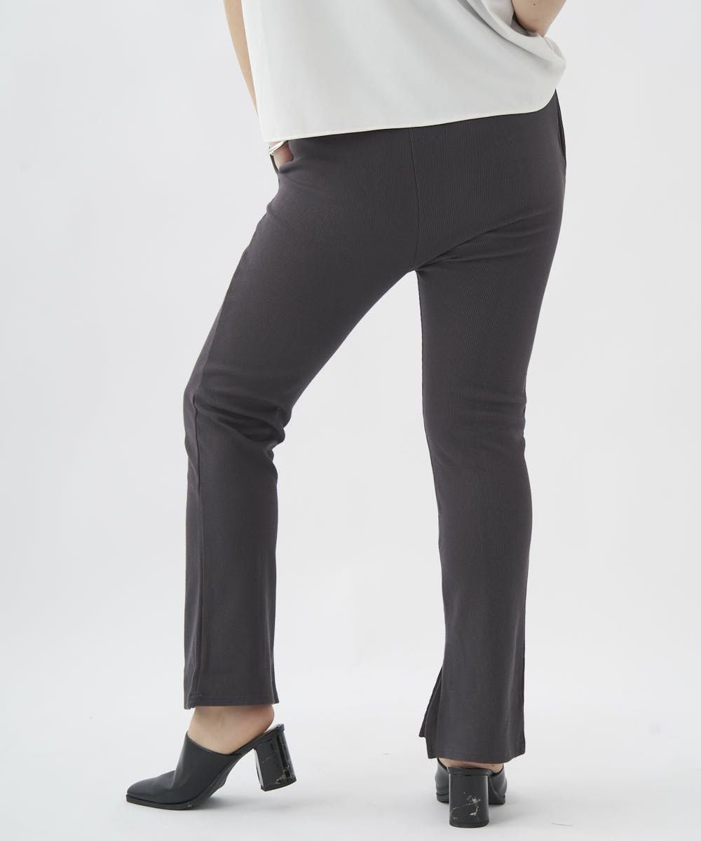 センターにピンタックを入れたリブ素材のイージーパンツ。オーバーサイズのTシャツやスウェットとのコーデがおすすめ。