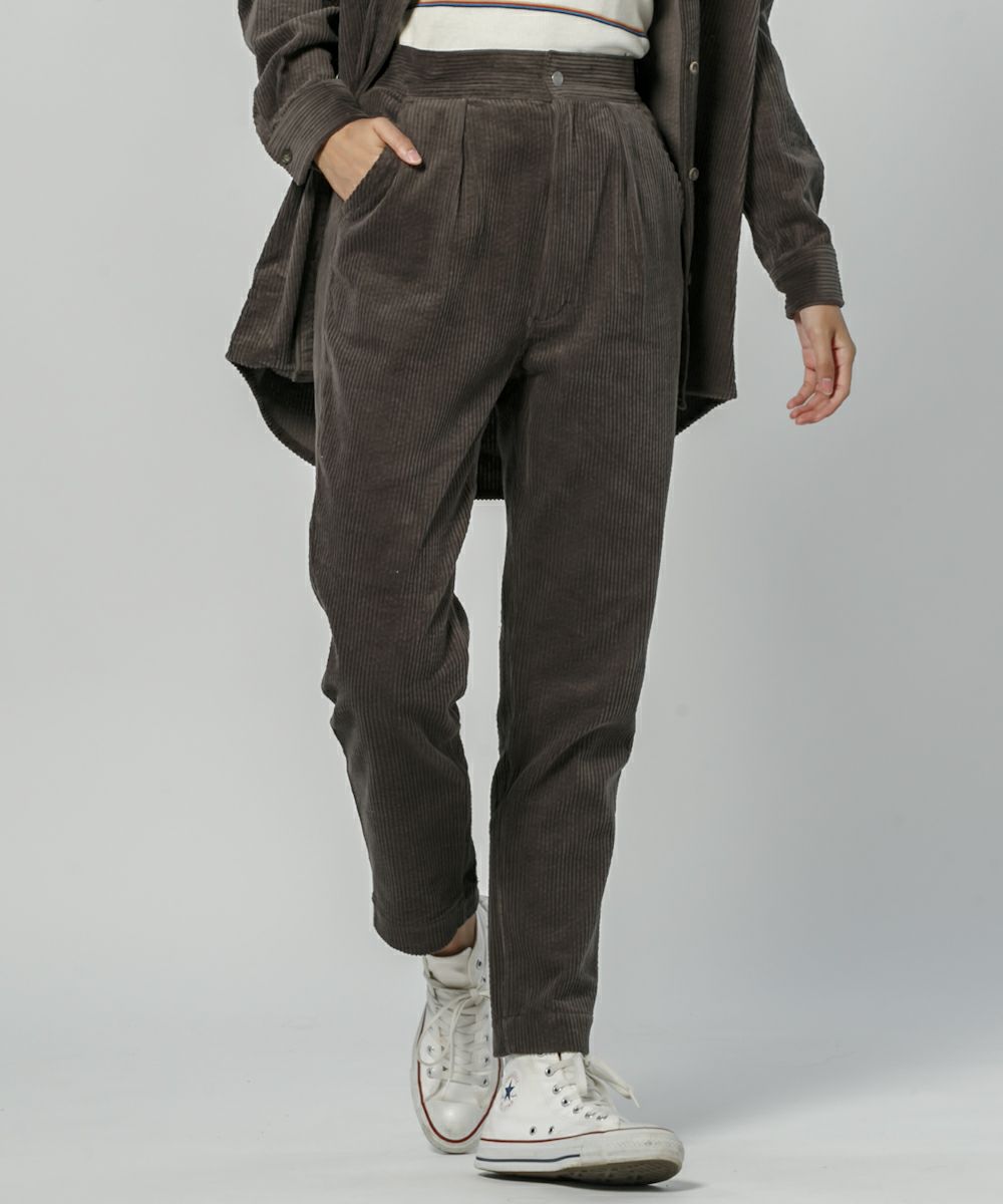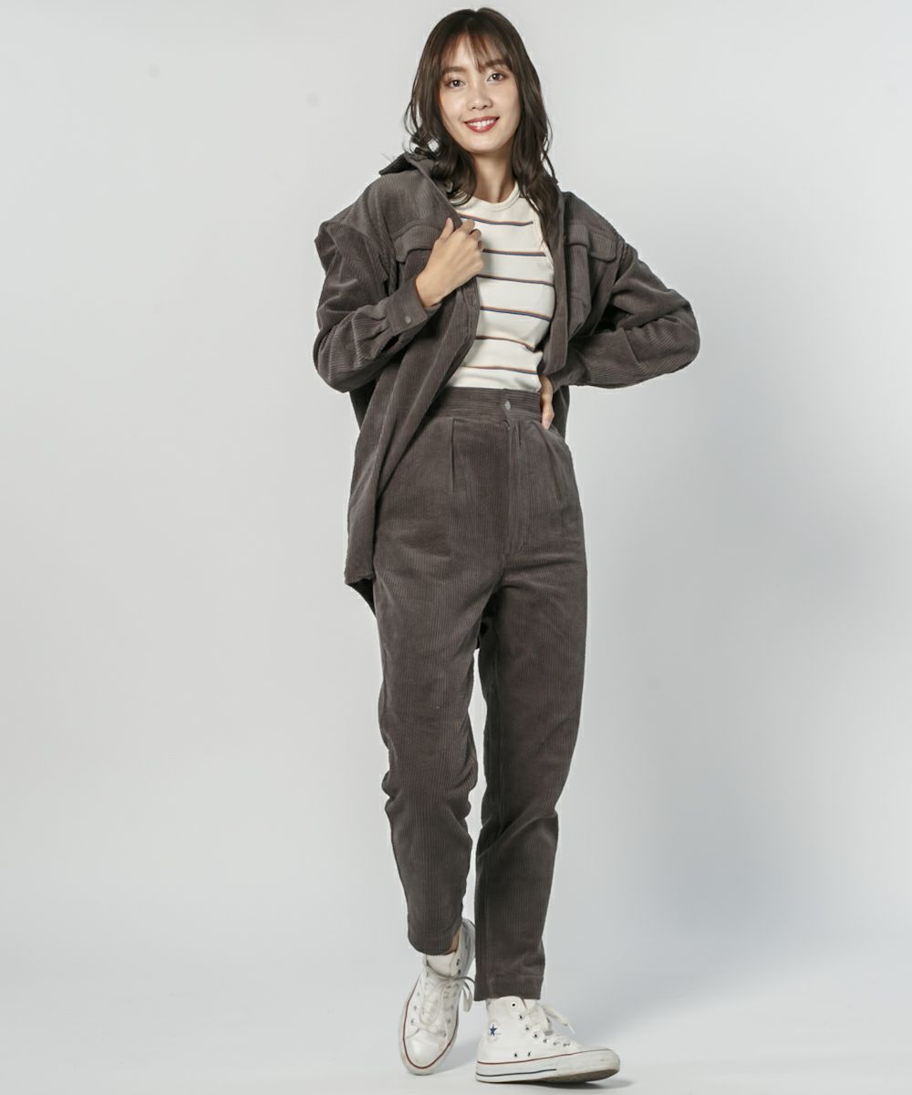 パンツだけを取り入れても秋らしいコーデを楽しめますが、オススメはセットアップ!(シャツ品番:550300) ウエストタック入りの緩やかなテーパードシルエットなのでリラックススタイルにピッタリ!ローゲージなニットやビックシルエットパーカーなど緩めのトップスに合わせるのがオススメです◎