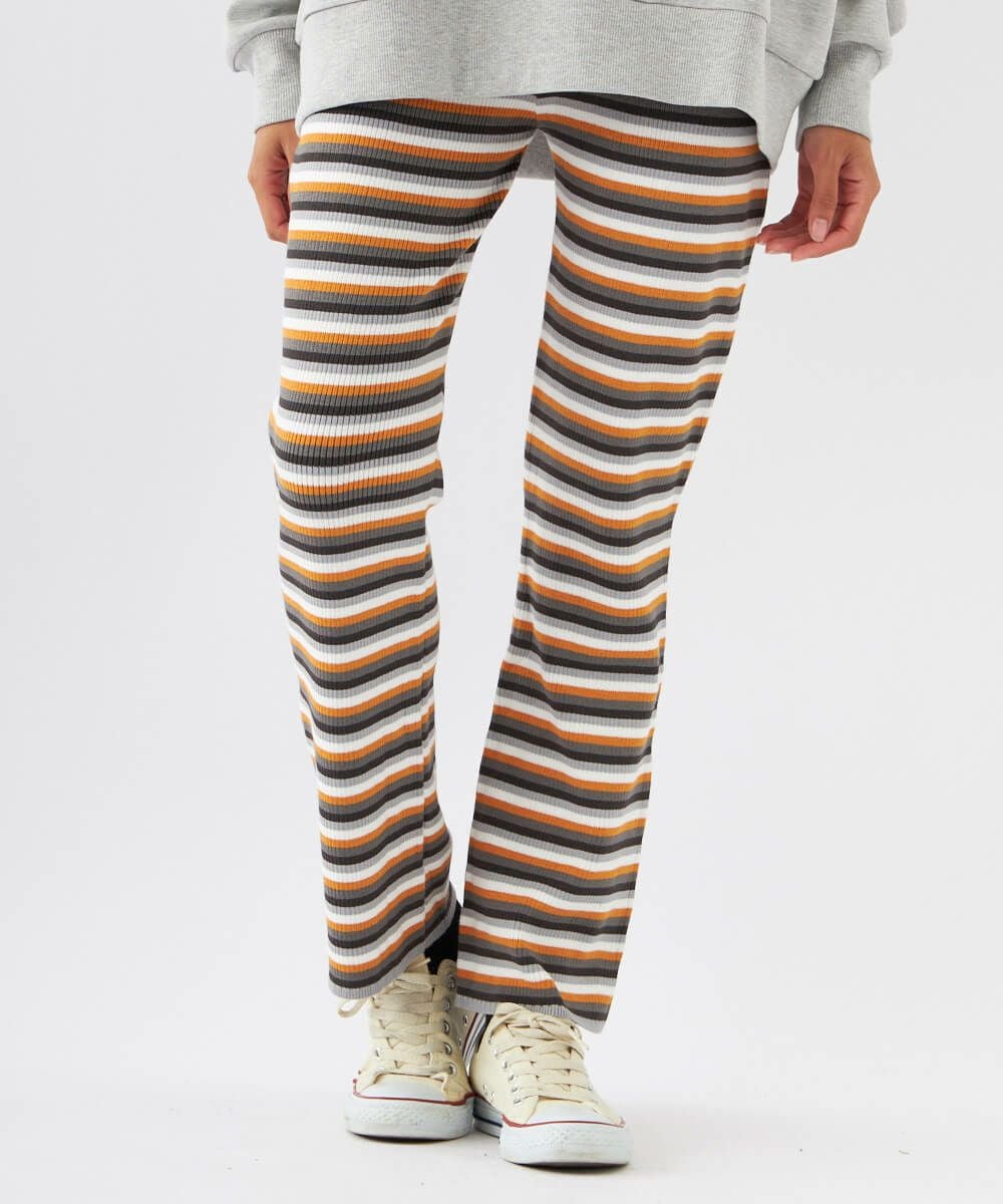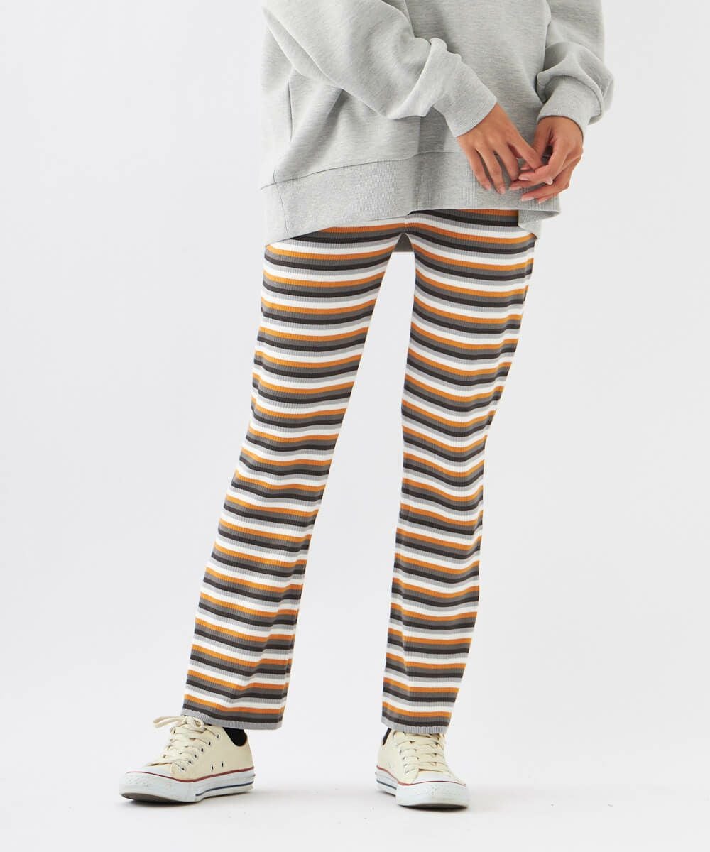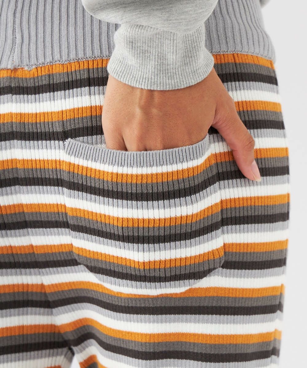 こなれた印象に仕上がる、ジャガード織りのボーダーニットパンツです。オーバーサイズのトップスとの相性は抜群。カジュアルになりすぎず、脚を綺麗に見せてくれるシルエットもおすすめポイントです。