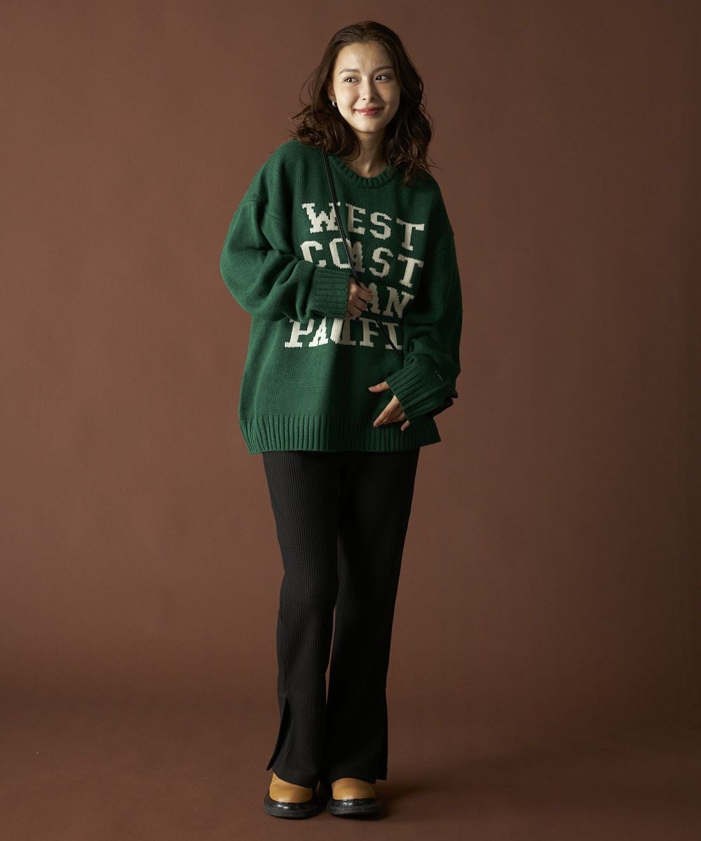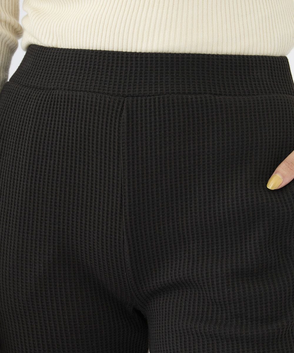 レディース 【高身長サイズあり】美脚 裏起毛ワッフルフレアパンツ