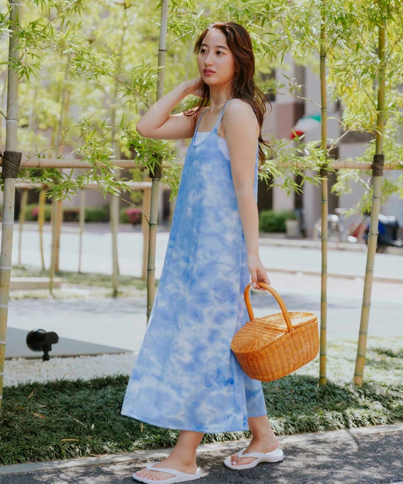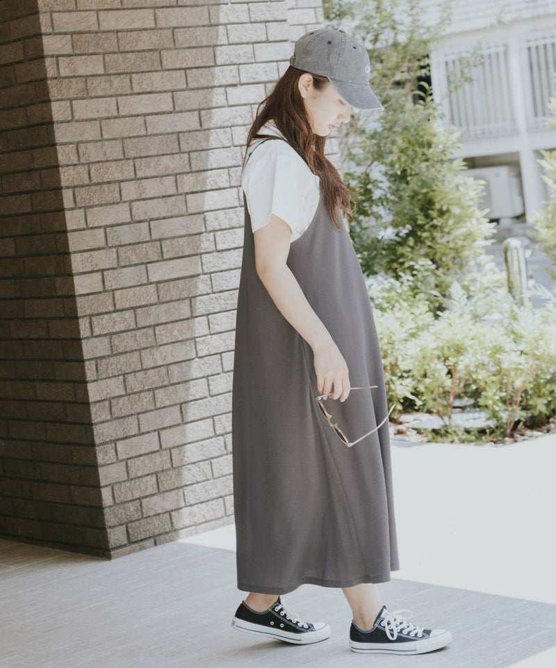 肩紐で長さ調整可能。水にも入れるハイブリッドワッフルなので、普段着でも水回りのレジャーでも様々なシーンで着て頂けます。
