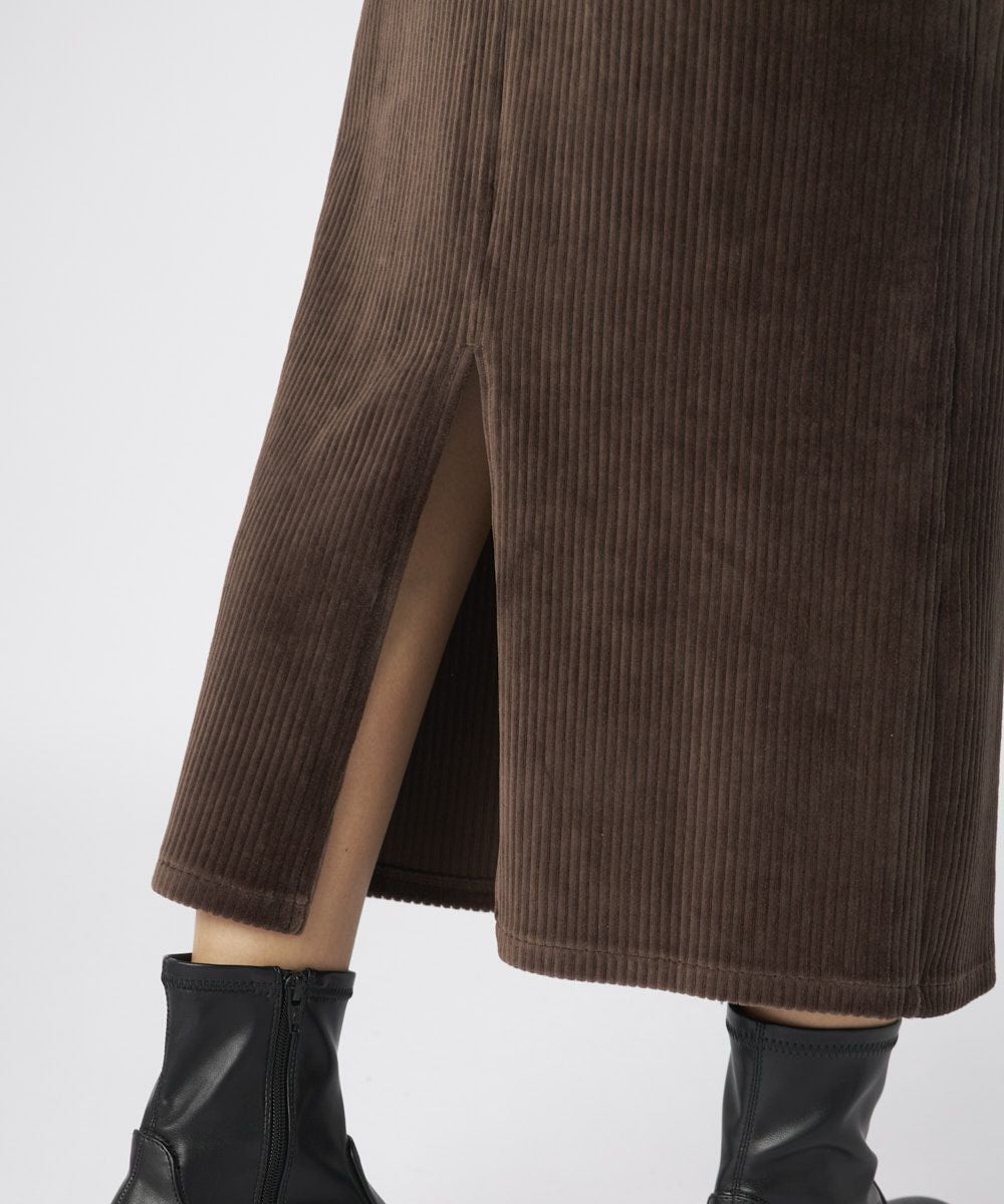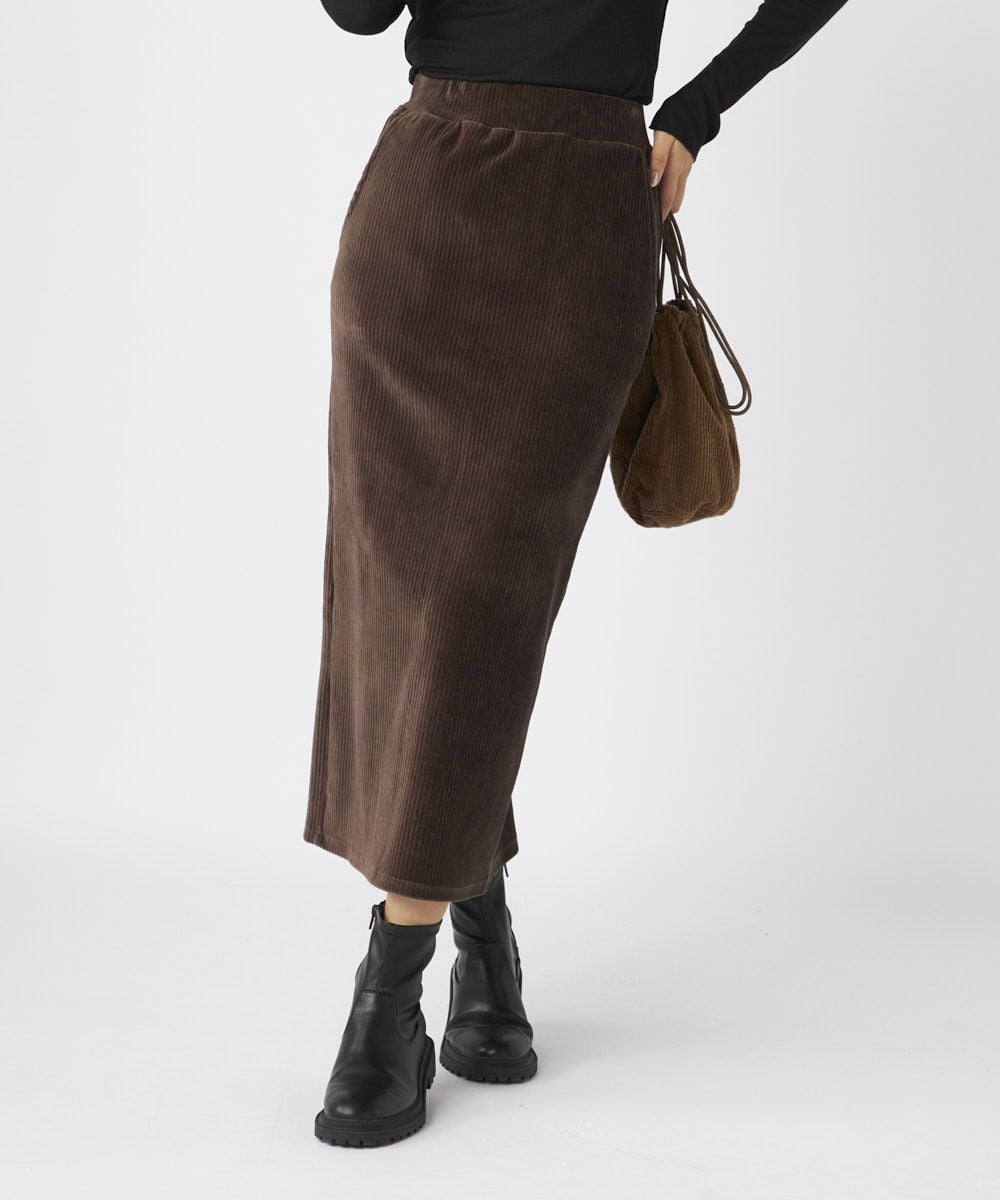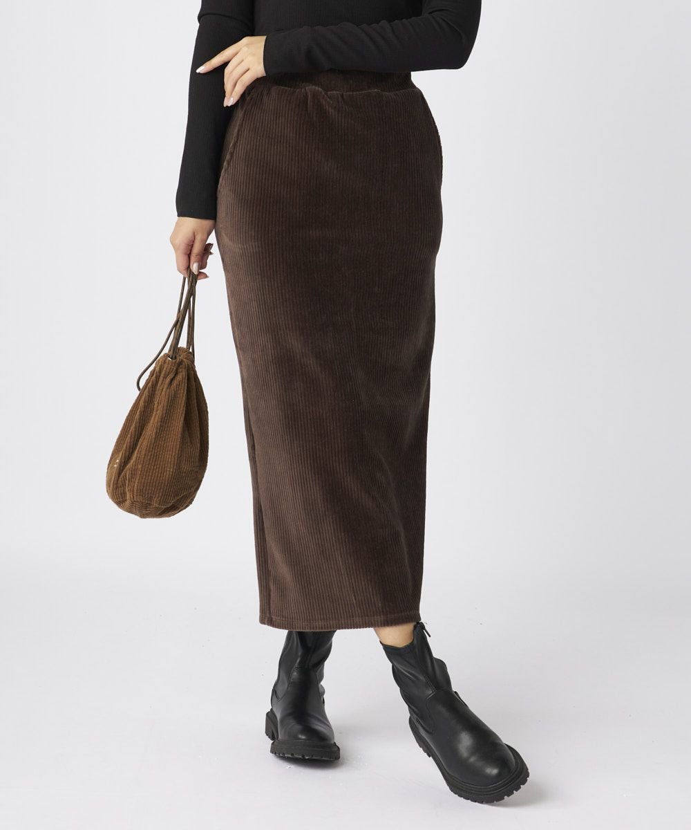 裾のスリットが女性らしく、ウエストゴムで履き心地は楽ちん!秋冬らしい温かみのあるコーデュロイで幅広いテイストにマッチ!!
