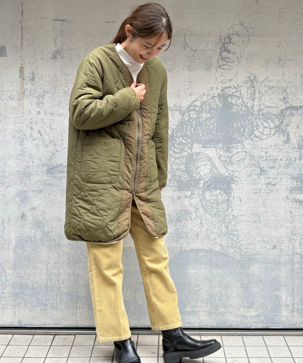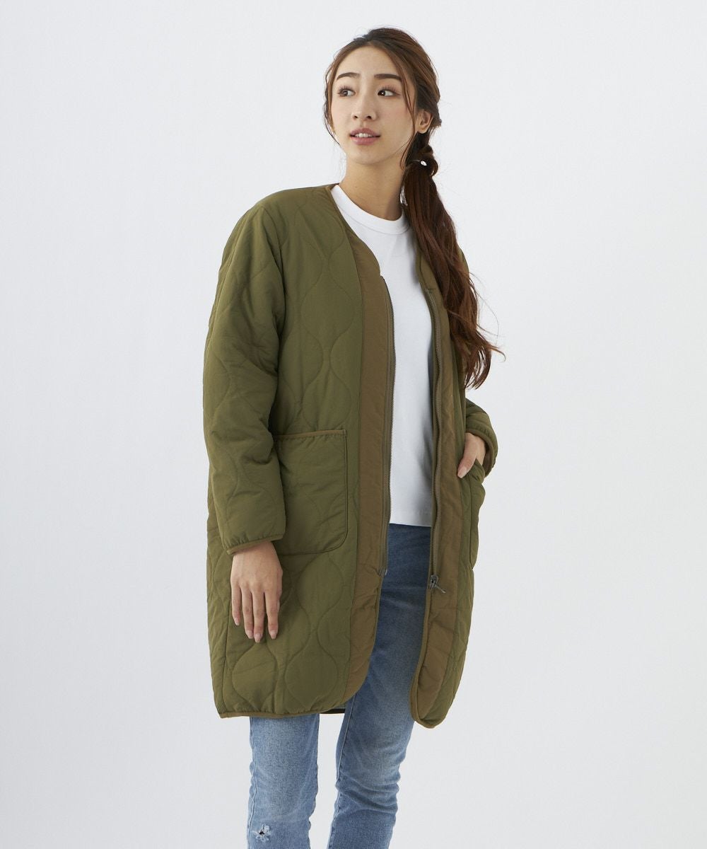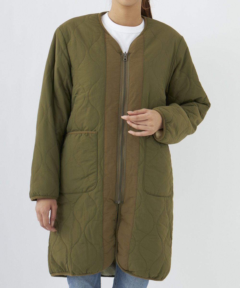 ボア・キルトどちらの素材も楽しめる、リバーシブルのコートです。 風を通しにくいしっかりとした生地感で、冬でも暖かい。