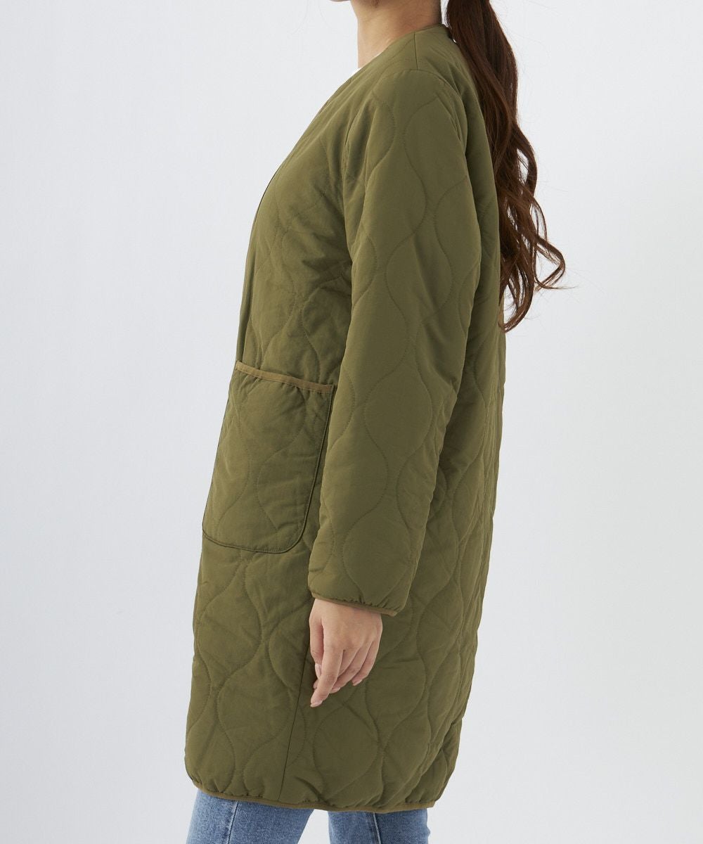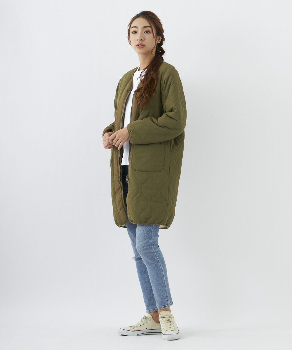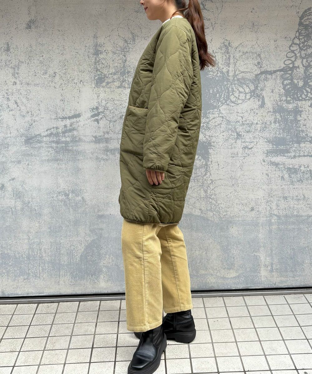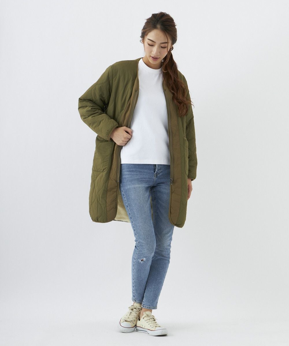 ボア・キルトどちらの素材も楽しめる、リバーシブルのコートです。 風を通しにくいしっかりとした生地感で、冬でも暖かい。