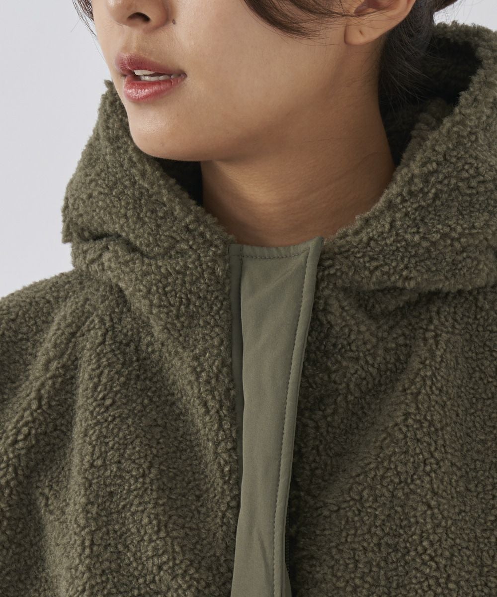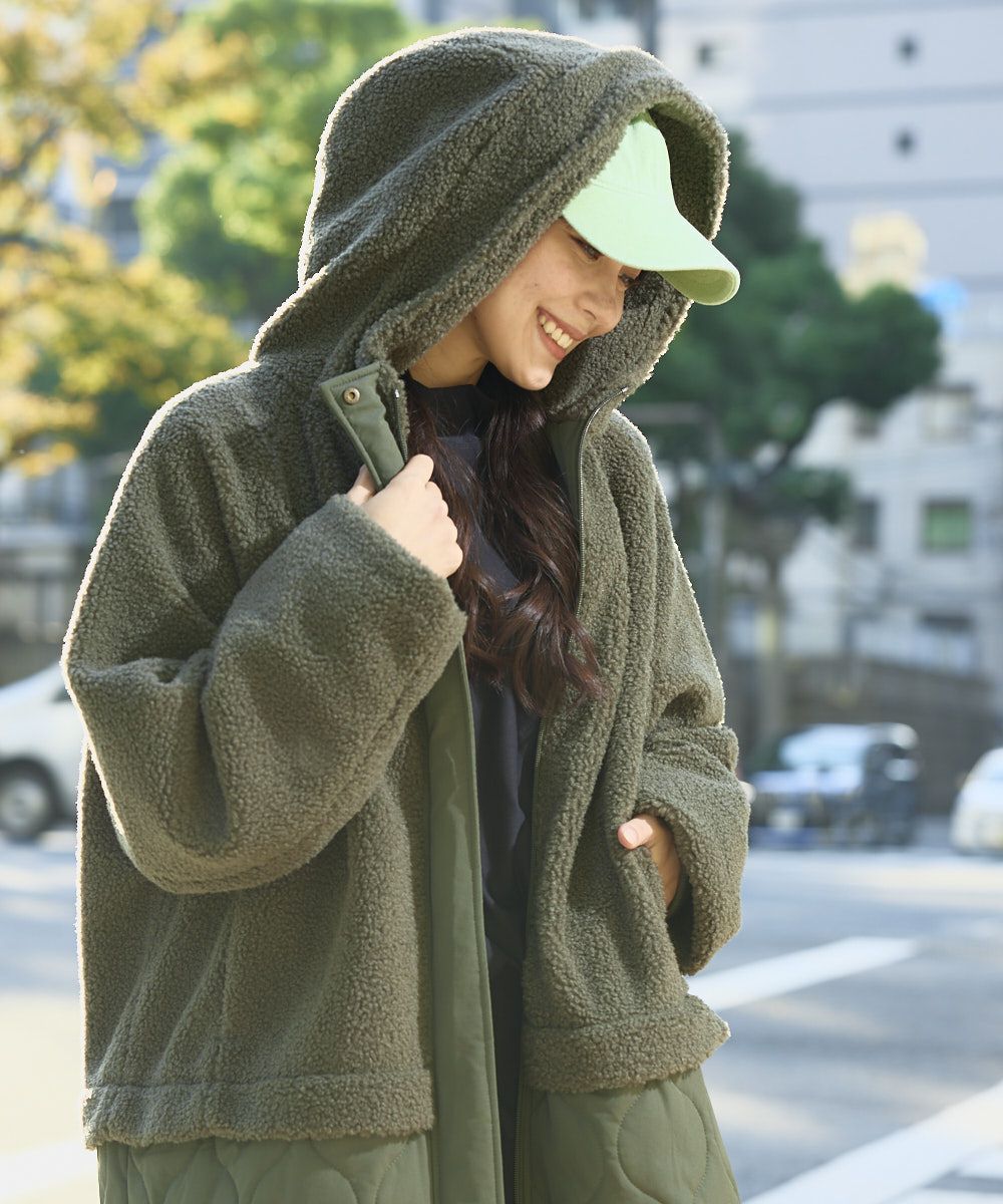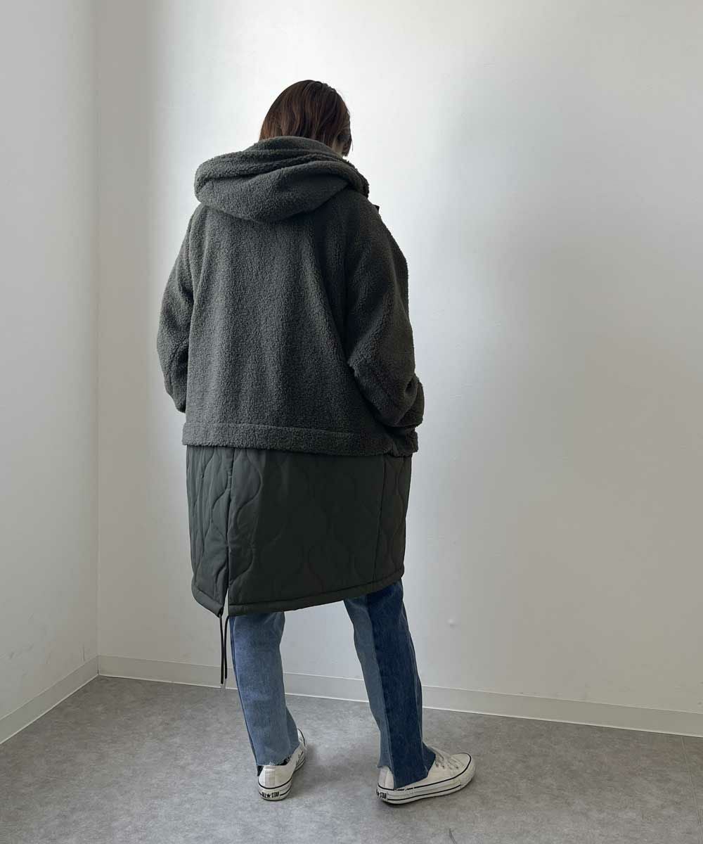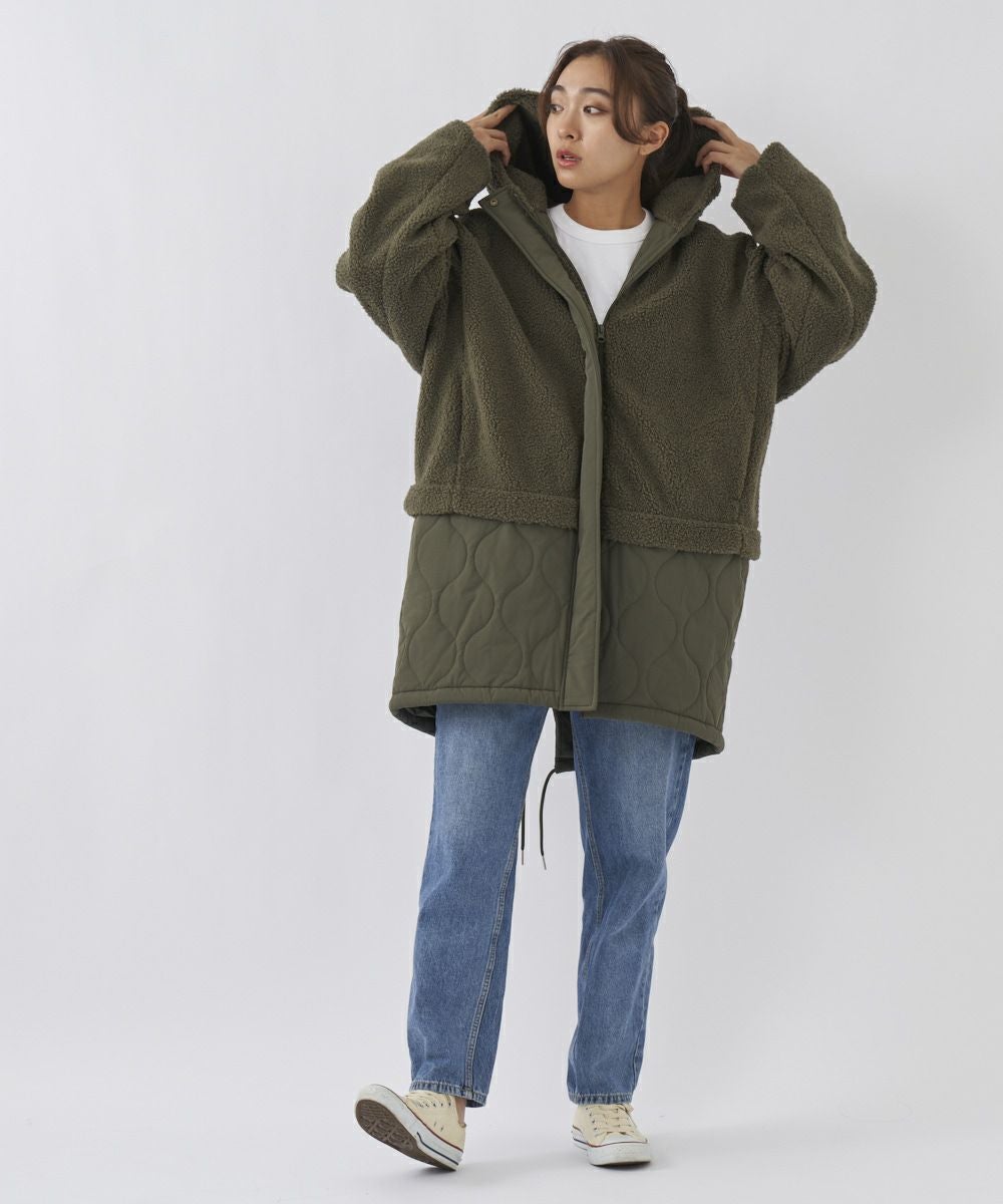 レディース ボア×キルト切り替え フード付き ロングコート