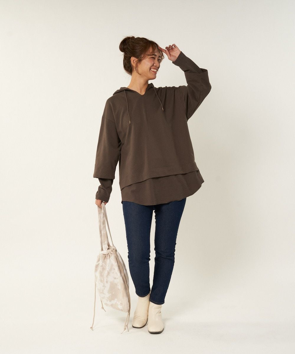 袖や裾に施されたレイヤード加工でまるで重ね着しているかのようにおしゃれ差がUP!