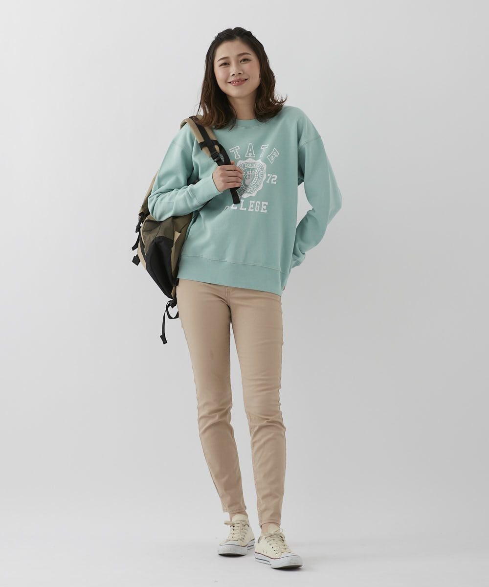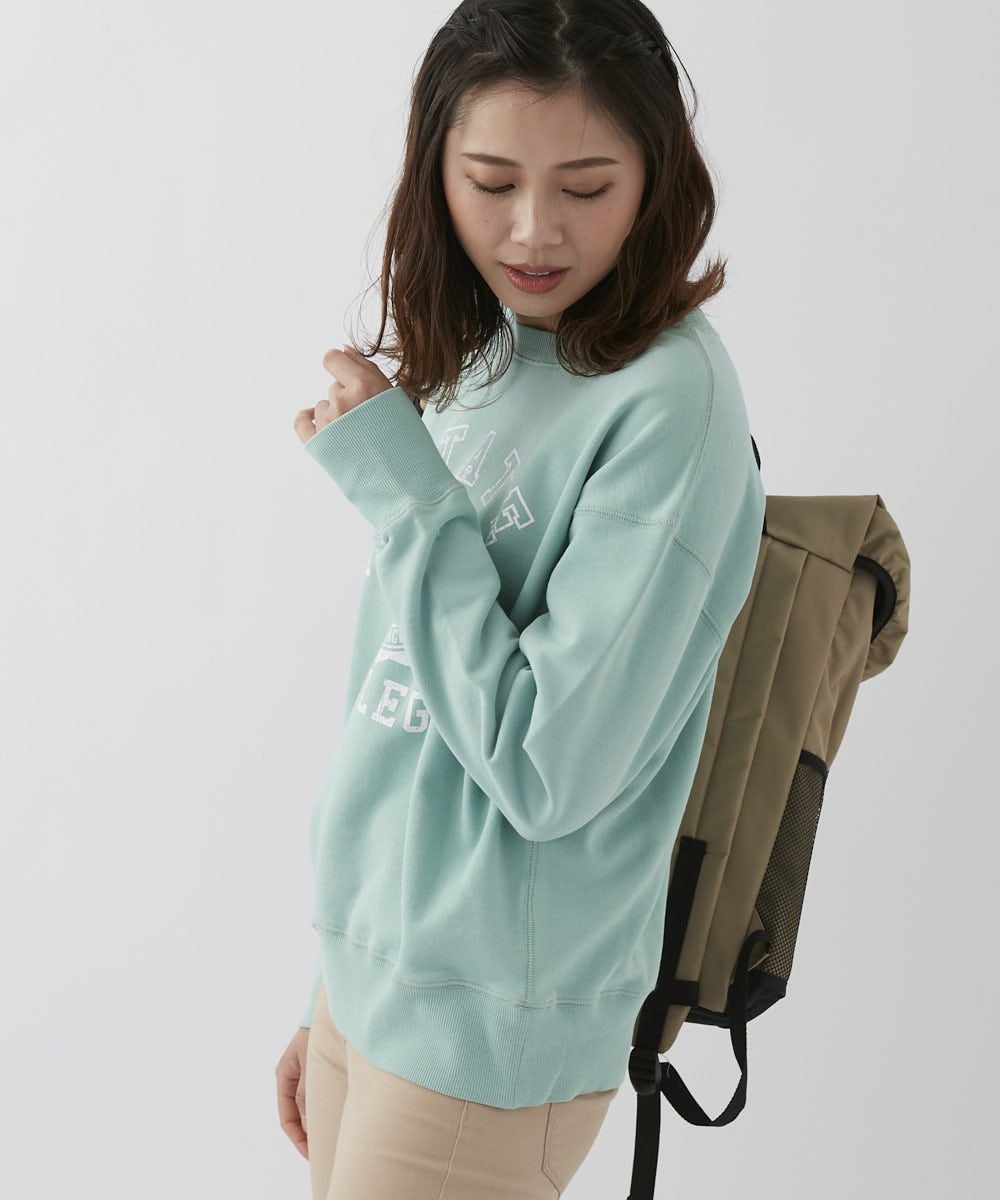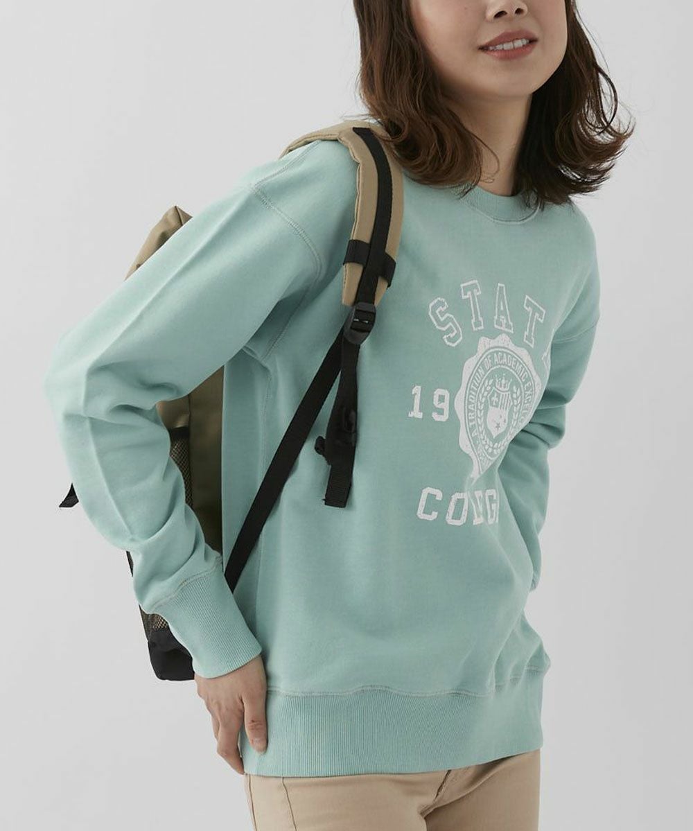 バイオウォッシュ加工によって、ヴィンテージライクな風合いを楽しめるカレッジスウェットです。かすれ調のロゴプリントが古着のようなこなれ感を演出。 ドロップショルダーなので、女性らしいリラクシーなスタイルにぴったりな1枚です。
