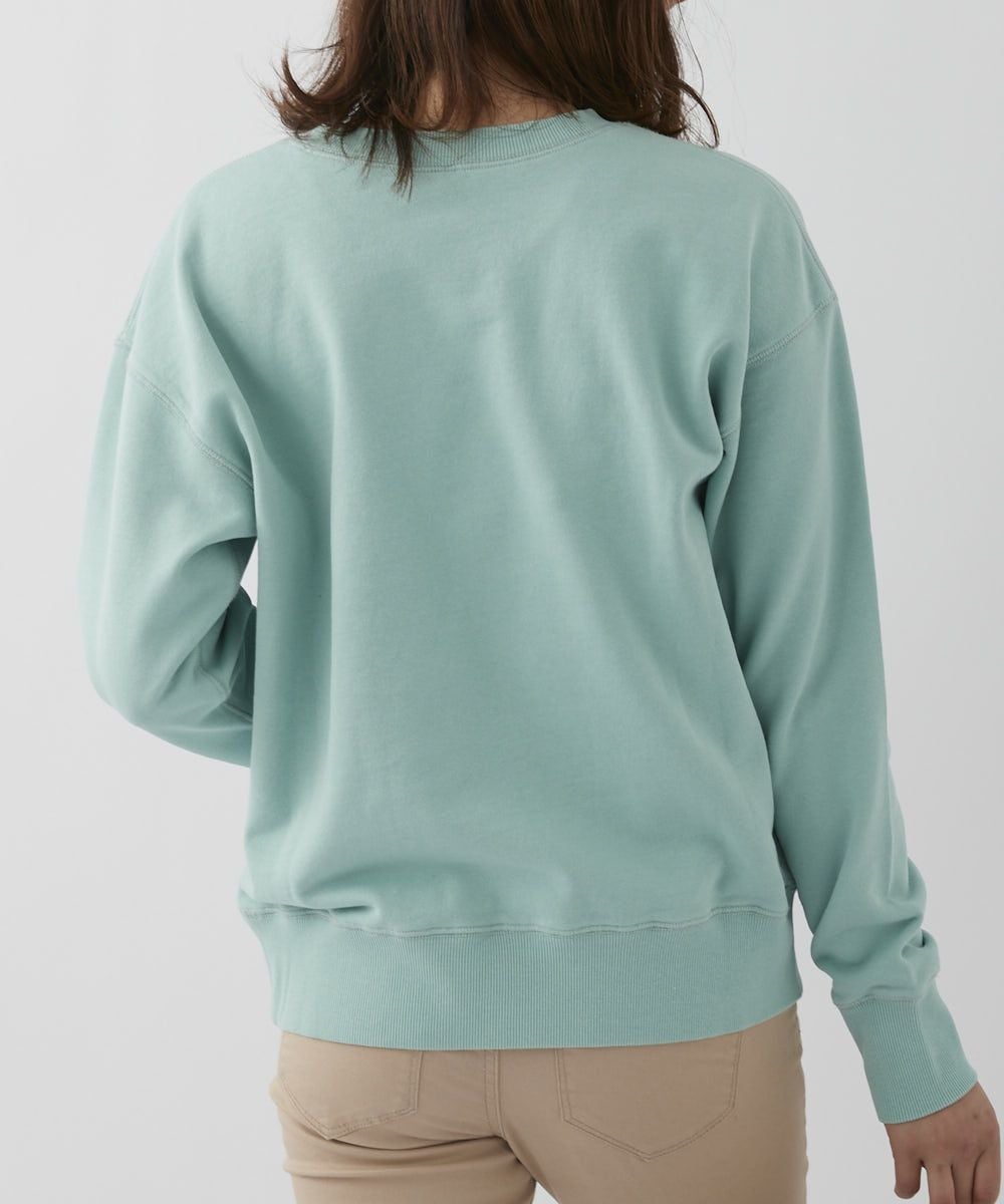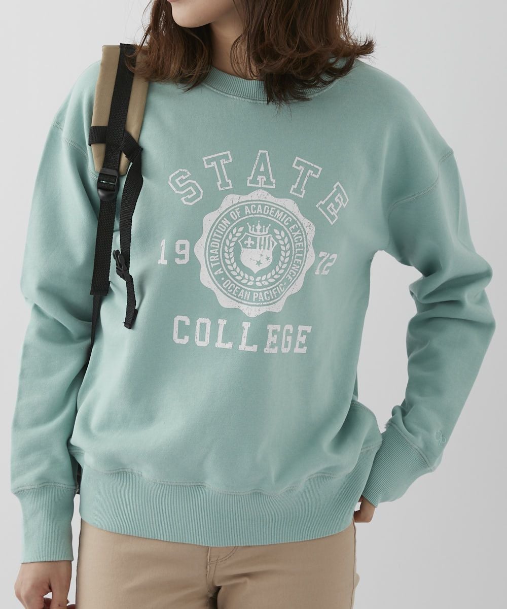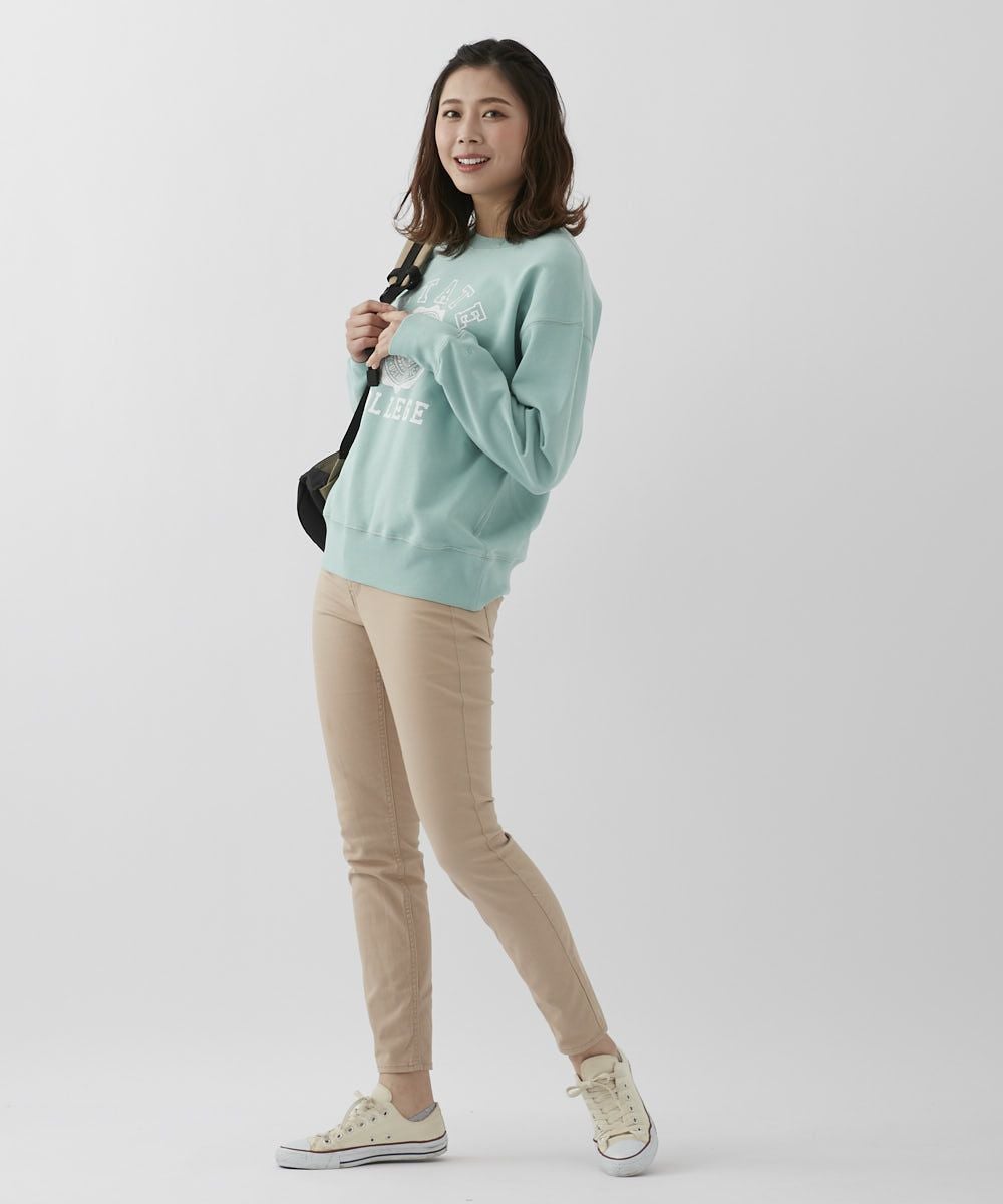 バイオウォッシュ加工によって、ヴィンテージライクな風合いを楽しめるカレッジスウェットです。かすれ調のロゴプリントが古着のようなこなれ感を演出。 ドロップショルダーなので、女性らしいリラクシーなスタイルにぴったりな1枚です。