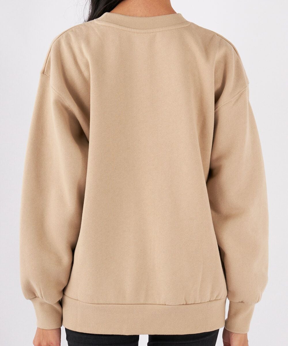 フロントの手書き風プリントがポイントのクルースウェット。身生地同色のプリントでシンプル大人カジュアルコーデにぴったりです!!ゆったりとしたシルエットで、柔らかい裏起毛素材、デイリーウェアにはもちろんリラックスウェアとしてもおすすめです。