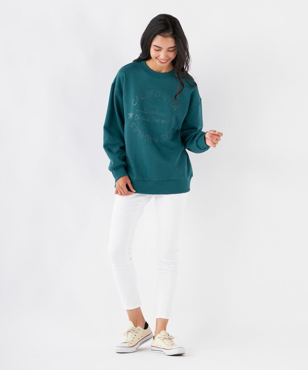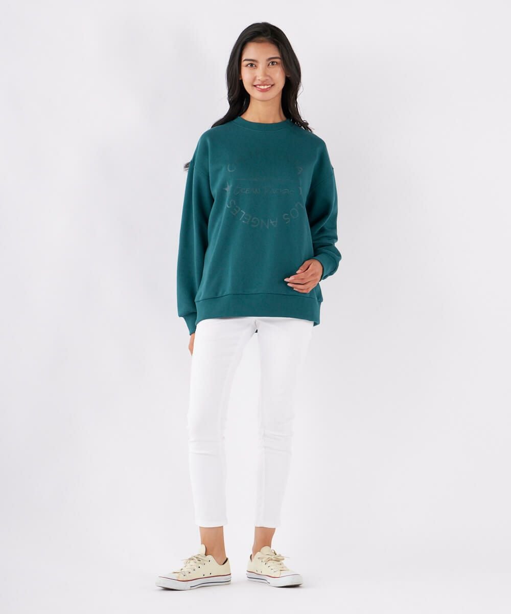 フロントの手書き風プリントがポイントのクルースウェット。身生地同色のプリントでシンプル大人カジュアルコーデにぴったりです!!ゆったりとしたシルエットで、柔らかい裏起毛素材、デイリーウェアにはもちろんリラックスウェアとしてもおすすめです。