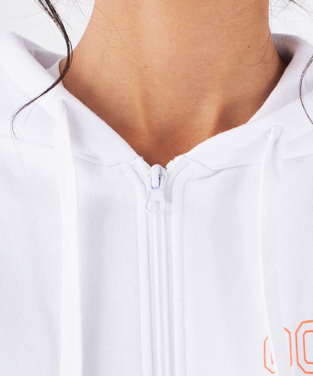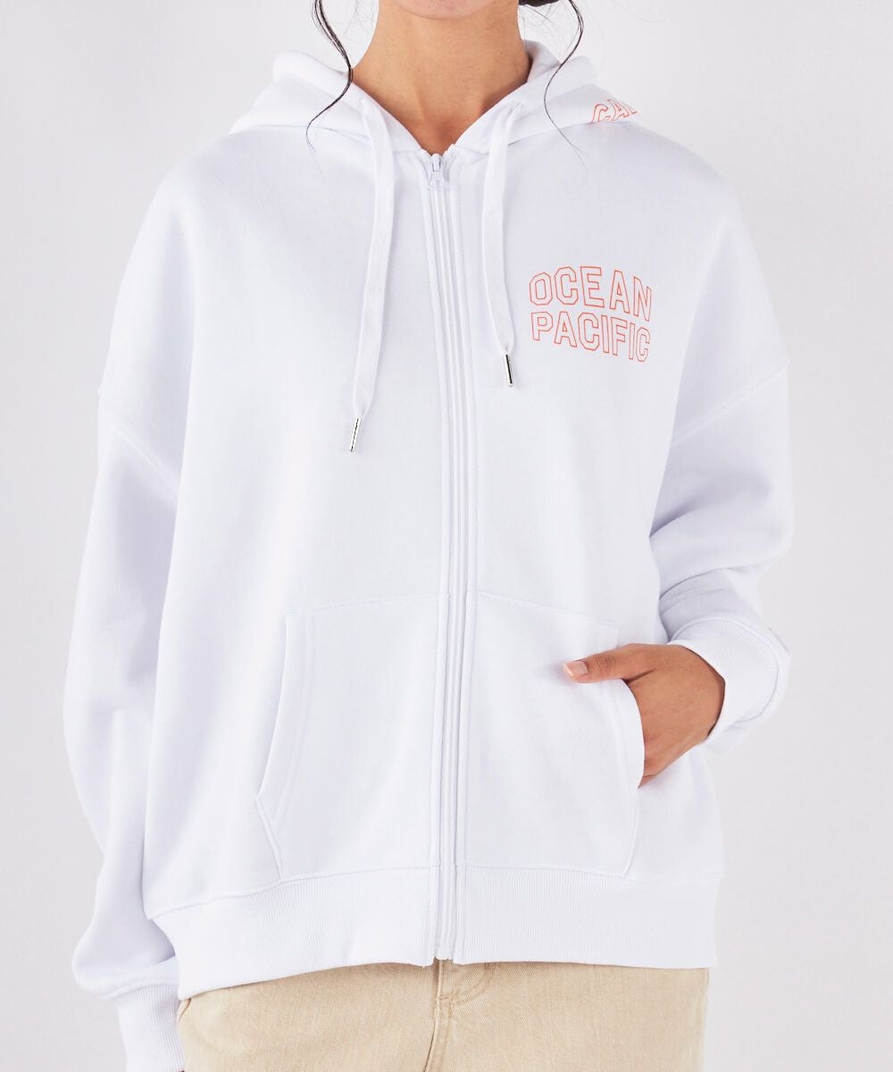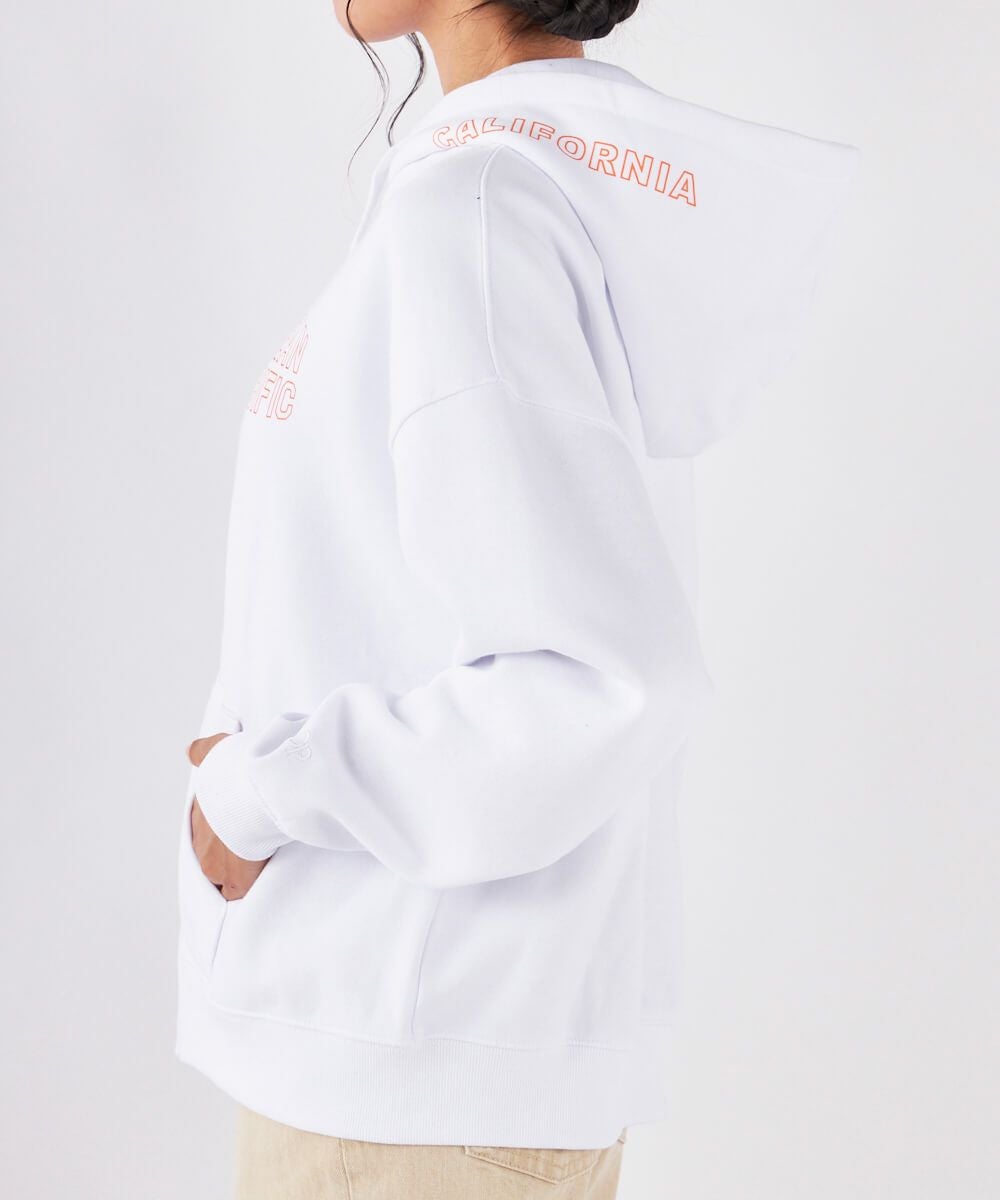 グラフィックプリントを胸元とフード部分にあしらったフルジップパーカーです。ジップアイテムなので脱ぎ着しやすく、オフィスや家の中でも温度調節に使いやすいパーカーです。フードが大きめで可愛く首周りもあったか!飽きの来ないデザインで、毎日のコーディネートにも大活躍。同素材でセットアップもおすすめ。