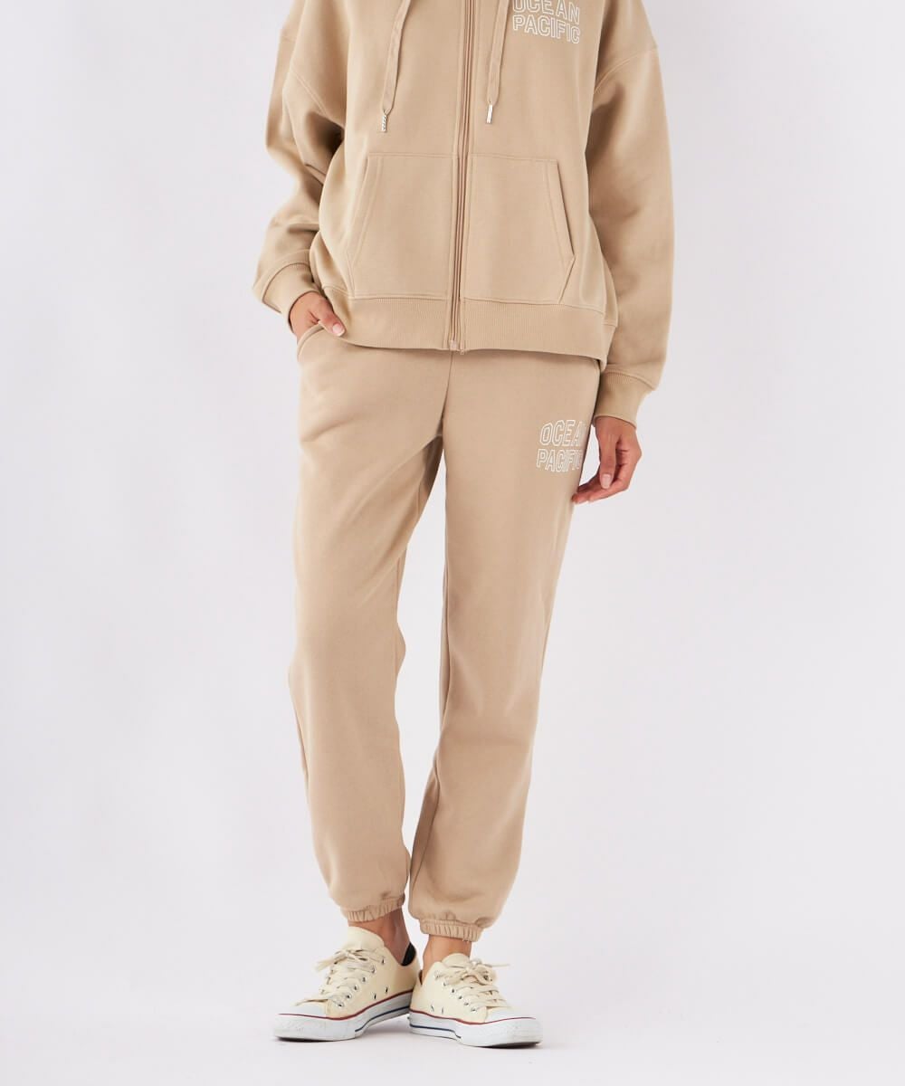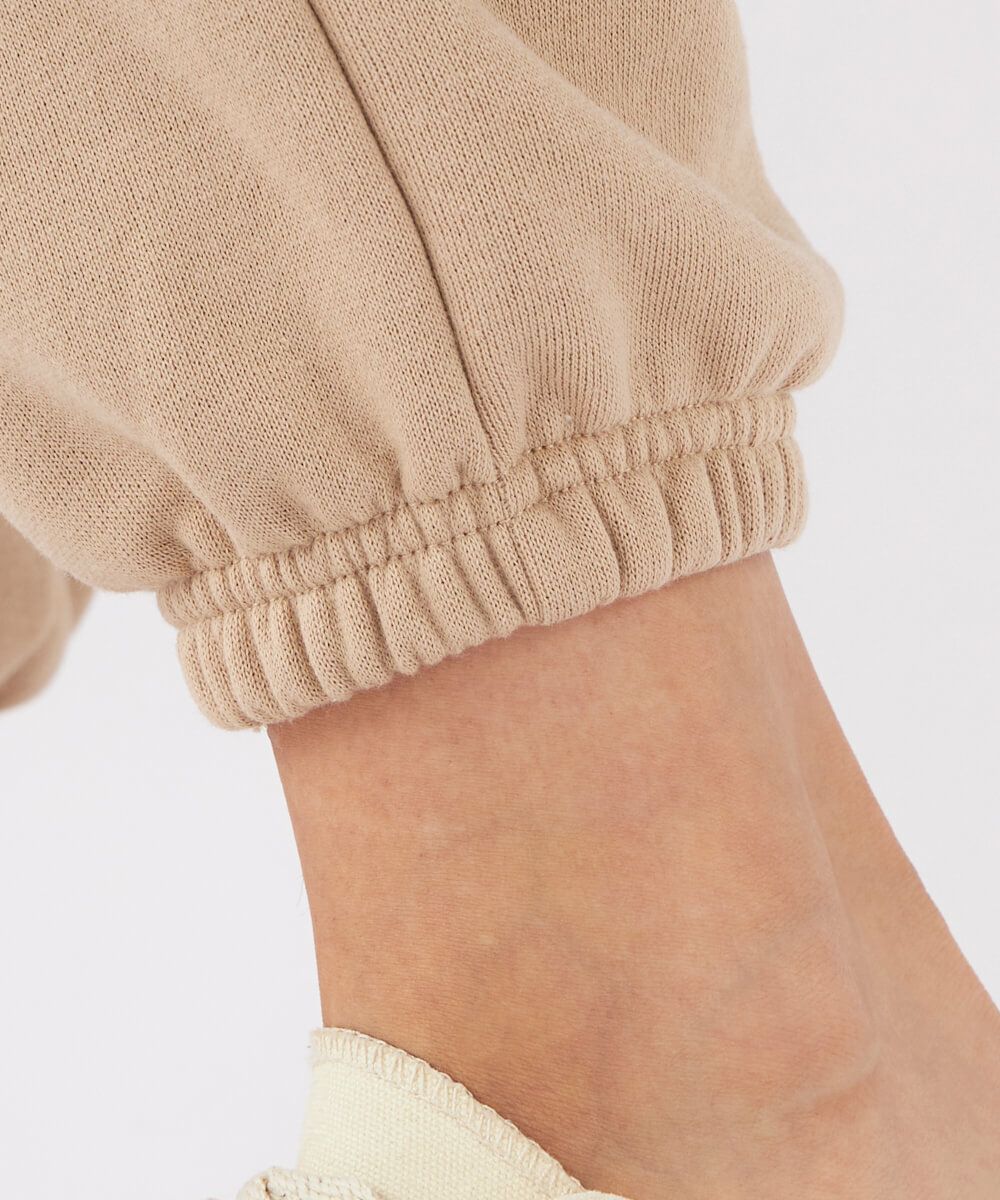 ウエストはゴム仕様で柔らかい裏起毛素材のゆったりとしたシルエット。裾ゴムで足元はスッキリ見せられます。同素材のトップスとセットアップコーデもおすすめ!スポーツにも普段着にも部屋着にもリラックスできるカジュアルコーデを楽しめます。シンプルなデザインなのでボトムとして着回しに使いやすい1枚です。