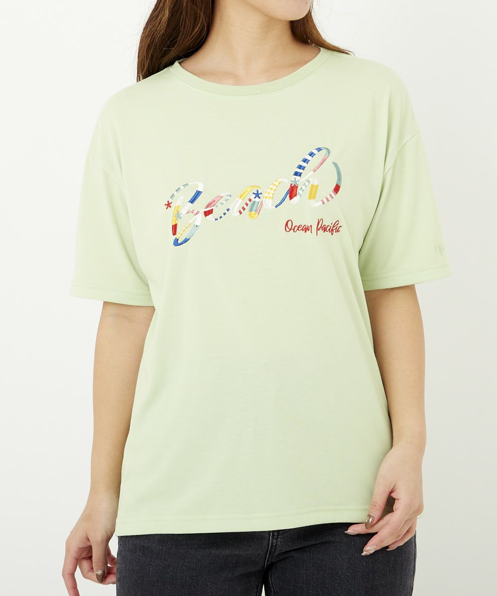 フロントの刺繍がポイントのTシャツ。サーフらしいカラーの糸を使い、立体的な刺繍をほどこした主役級のTシャツです。