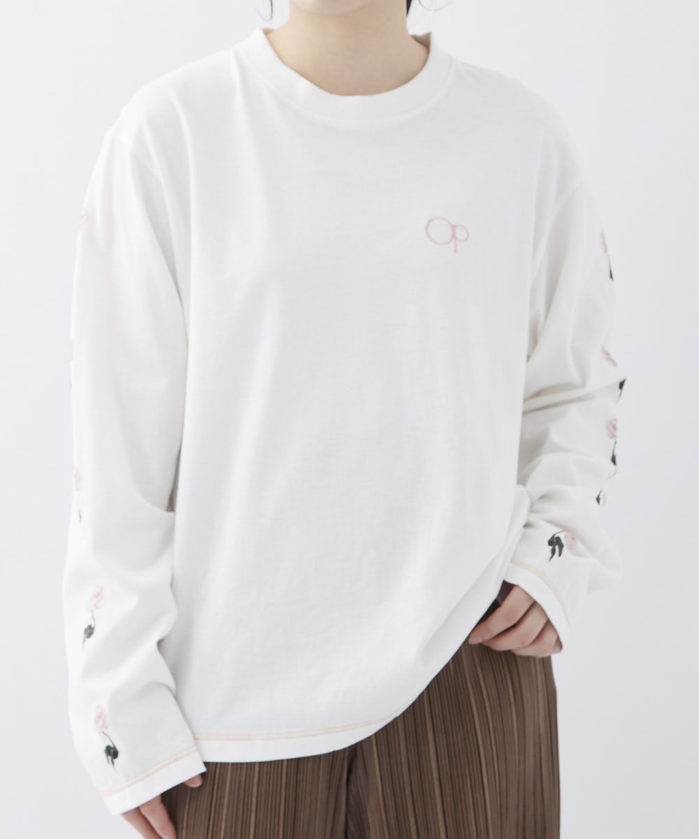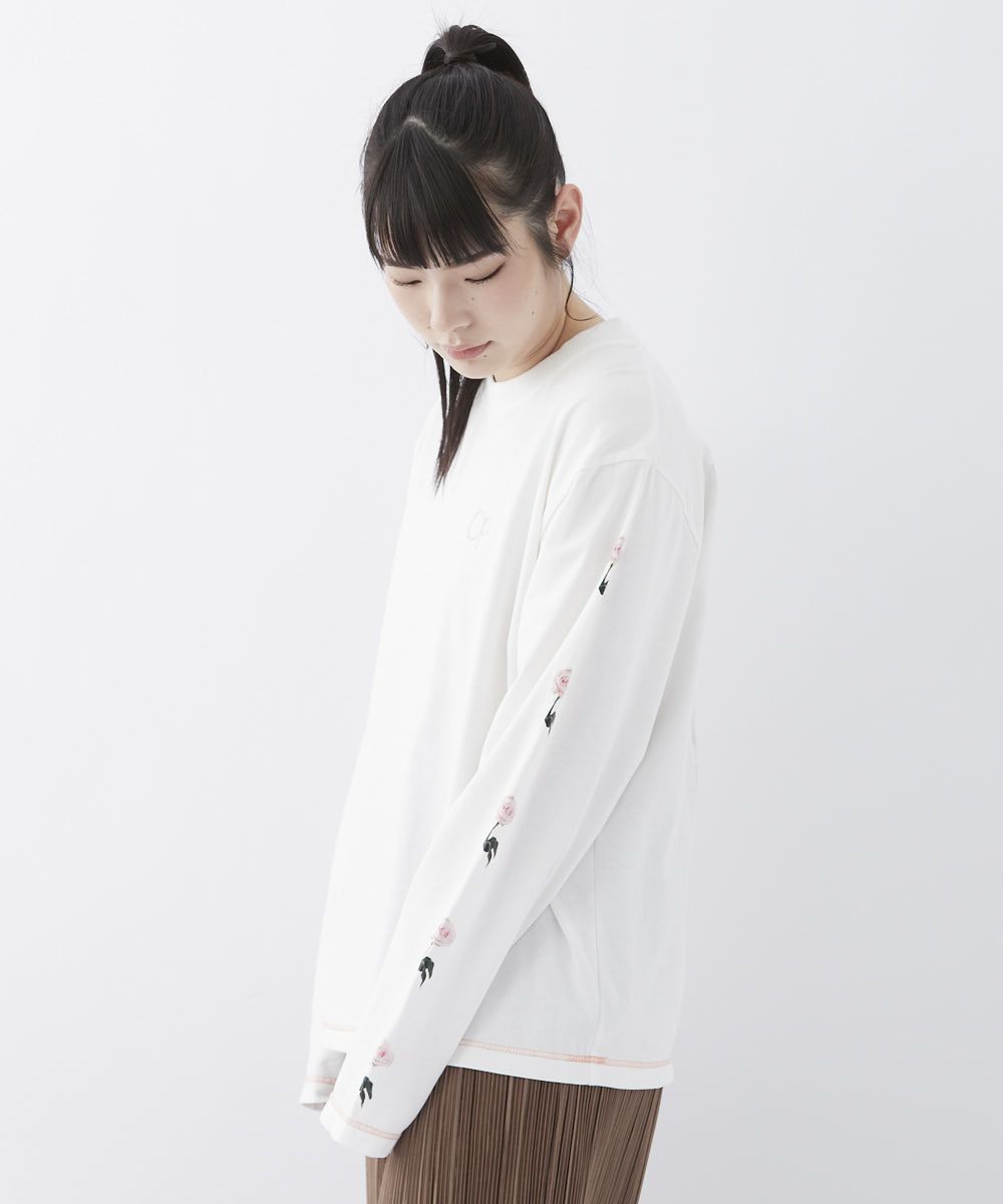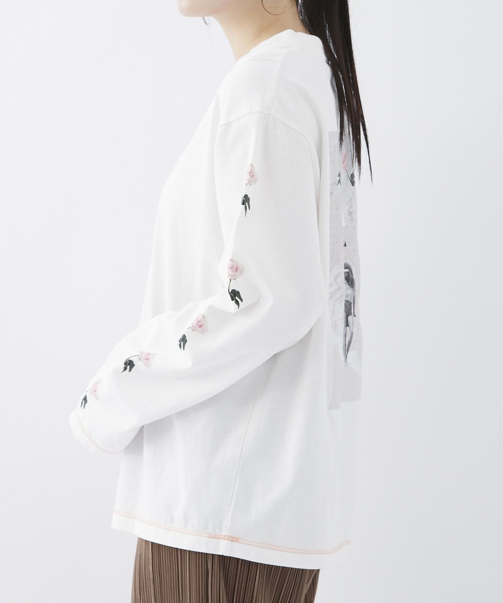 バックとスリーブにプリントをあしらったロンT。