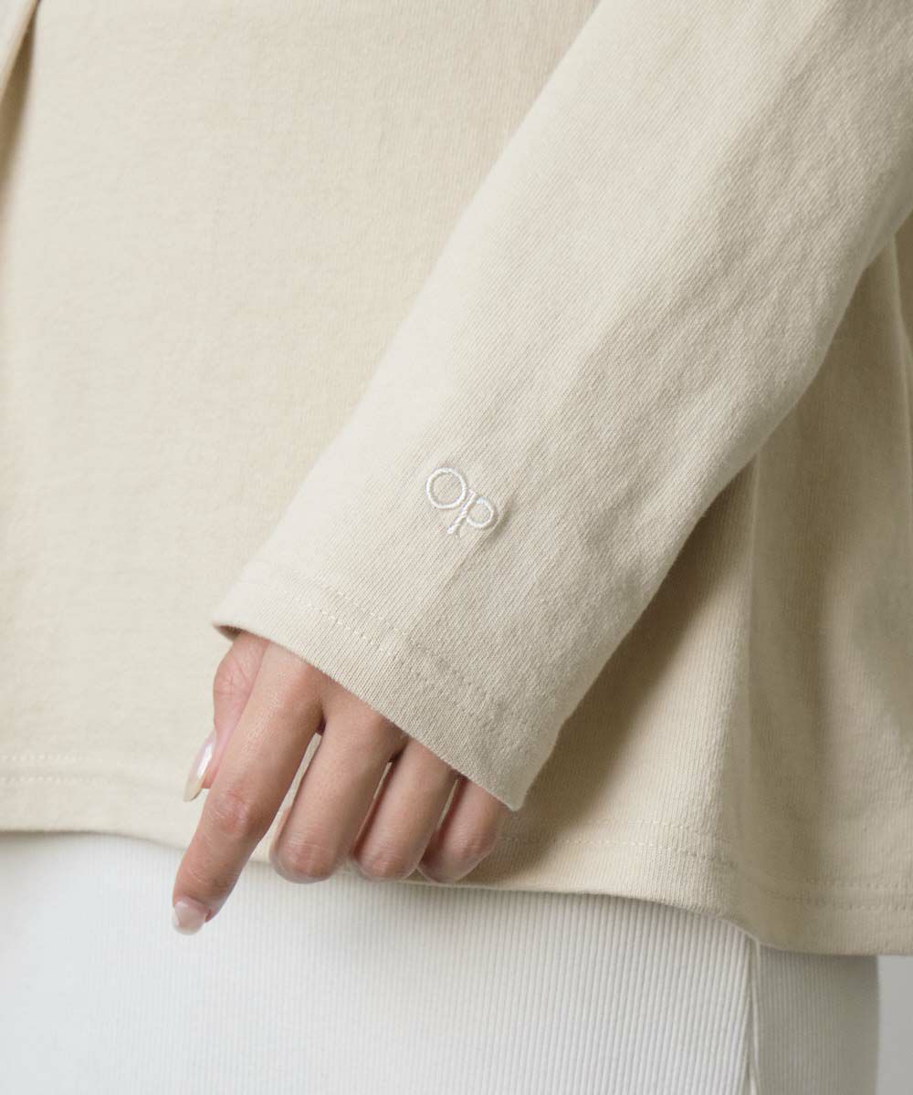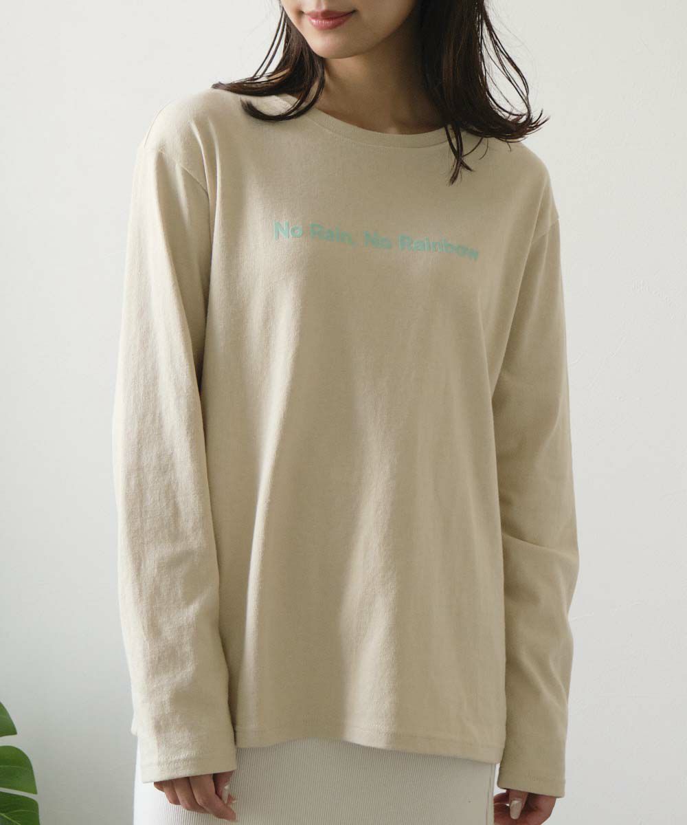 安定のベージュ色のロンTです。胸のロゴもグリーンでかわいいです。ちょっと触った感じ硬いので好みが分かれそうです