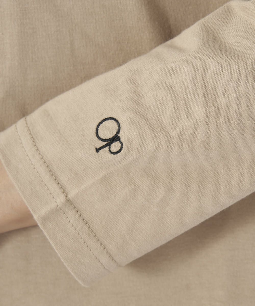 胸元のブランドロゴがポイントのシンプルな長袖Tシャツ。ドロップショルダーでリラクシーに着られます。長めの丈感で体型カバーも叶う嬉しいアイテムです。
