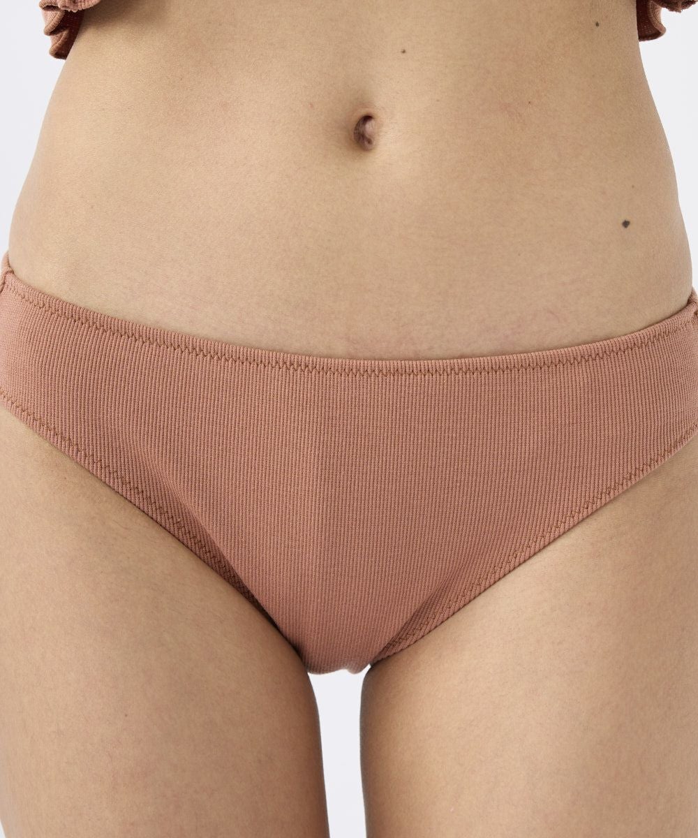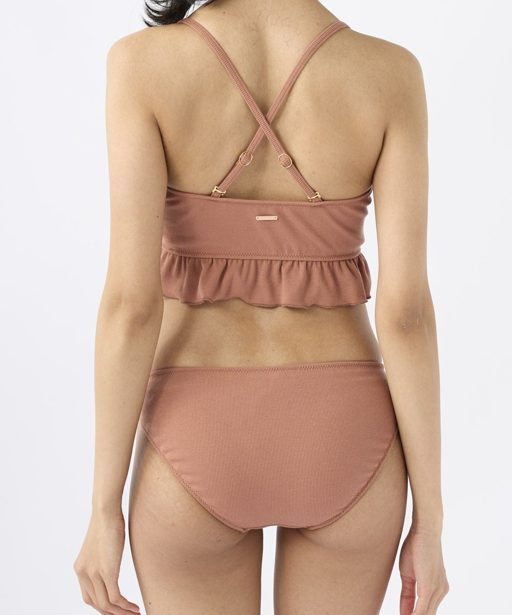 リブ素材ビキニ。バストサイドの編込みが女性らしさをアップさせます。