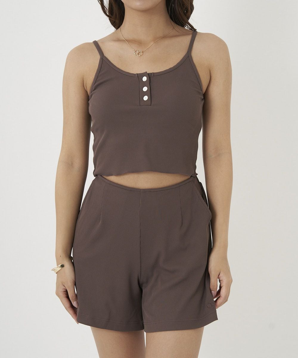 素材感がかわいい大人気のリブ素材のタンキニ水着と