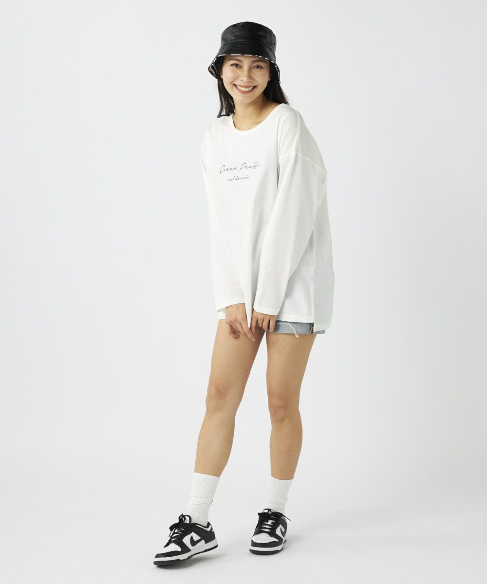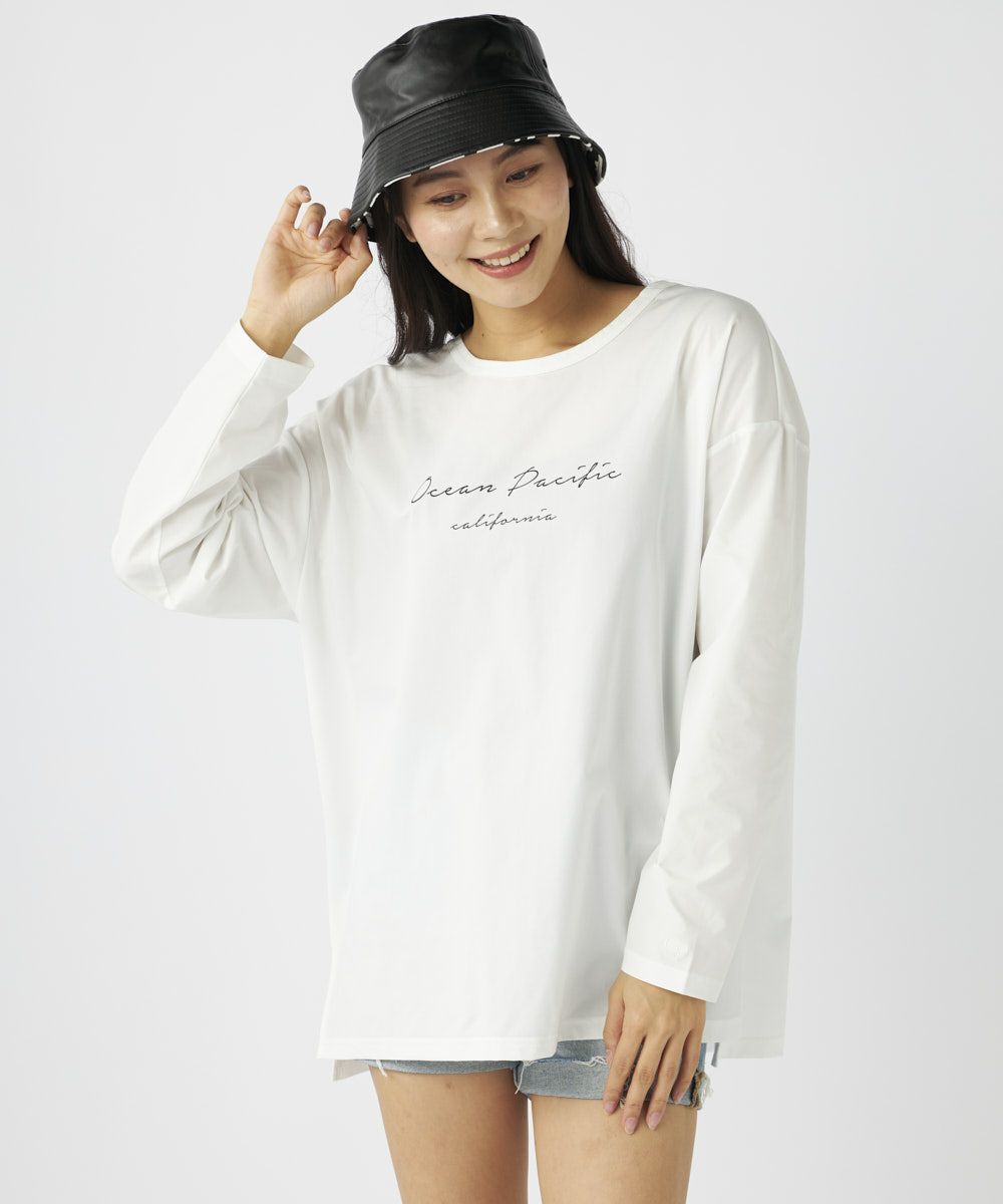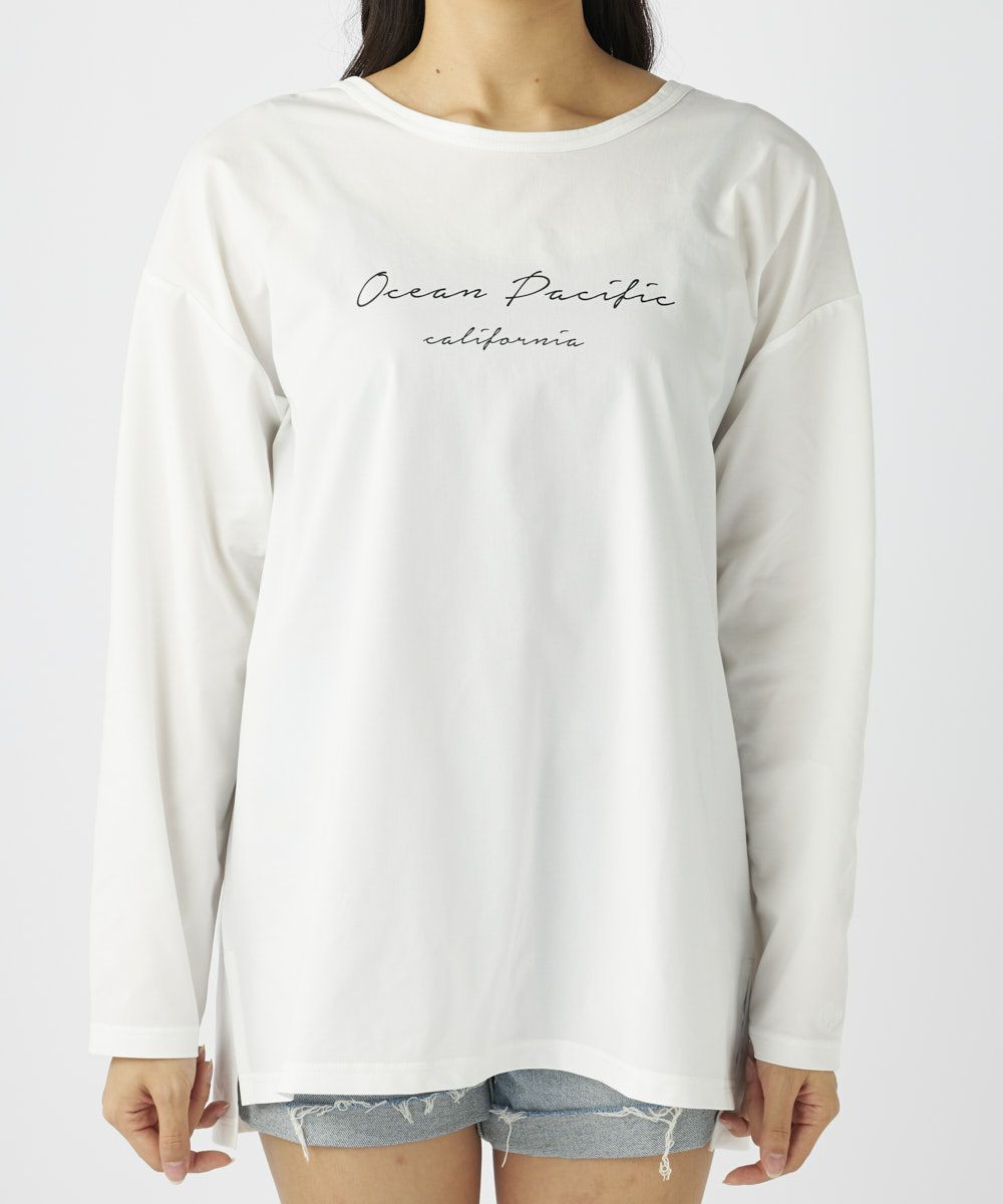 ocean pacific/オーシャンパシフィック後ろのバッグデザインが特徴のロンTラッシュガード!水辺にも街着にも使えるおすすめアイテムです! 超軽量ですぐ乾くのも特徴のペアテックスで水陸両用におすすめの素材です!