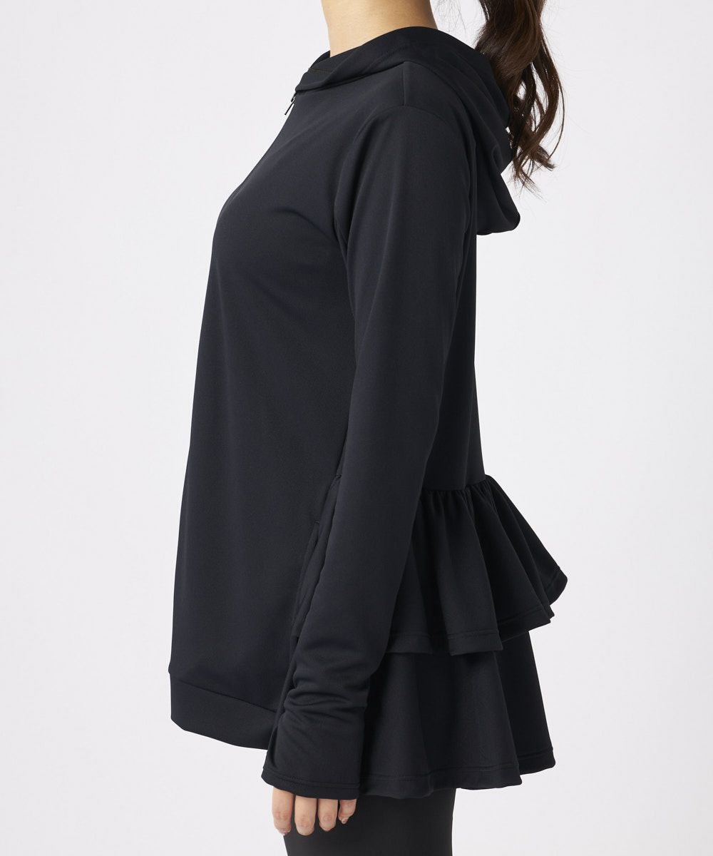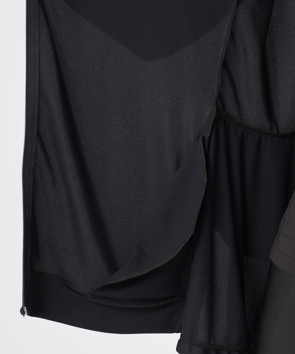 綿ライクなポリエステル100%の機能素材を使ったプルオーバー。薄手でハリ感があり、シャツ素材のように見えますが、実はストレッチ性のあるラッシュ素材でストレスフリーな着心地です。バックの首元はファスナー仕様で着脱もスムーズ。ふんだんに生地を使い、ギャザーをよせて甘さをプラス。ジャケットあわせで卒入園などのセレモニーにもおすすめです。フロントのドローコードで丈感も調整可能です。機能:UPF50+耐塩素吸汗速乾ストレッチ軽量